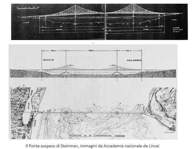 Sempre nel 1985, intanto, la Spa “Stretto di Messina” acquista dalla Spa “Gruppo Ponte di Messina” il progetto realizzato nel 1955 dall’architetto statunitense David Barnard Steinman di un “Ponte sospeso di tipo classico”, a 3 campate, con la campata centrale di 1600 metri e le altre due di 770 metri ciascuna, per una lunghezza complessiva di 3200 metri.