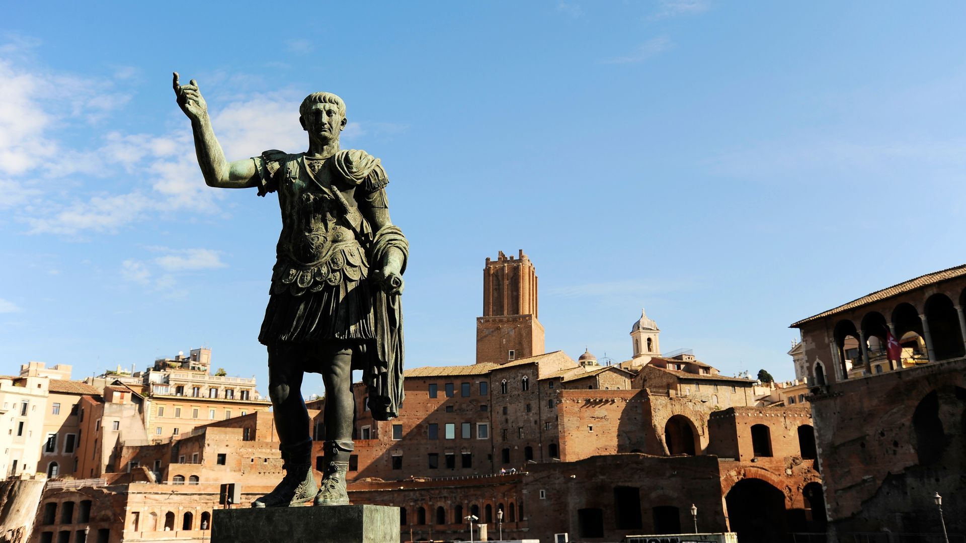 Testo lato sinistro: Un nuovo studio rivela che l’Impero Romano, con la sua vasta influenza su terra, mare e cielo, ha lasciato un segno profondo nella storia europea. Durante il suo massimo splendore, l’inquinamento atmosferico da piombo raggiunse livelli preoccupanti, con danni neurologici diffusi.