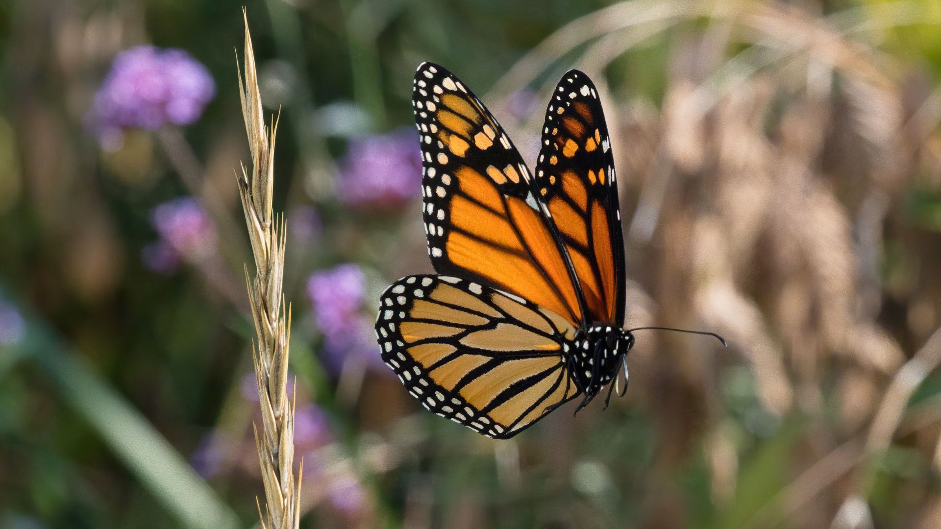 Testo lato sinistro: Tra ottobre e novembre, milioni di farfalle monarca si radunano nelle foreste messicane di abete sacro per svernare, dopo un viaggio di oltre 4.000 km dal nord degli USA. Tuttavia, il cambiamento climatico minaccia questi habitat, spingendo gli studiosi a sperimentare la "migrazione assistita" degli abeti.