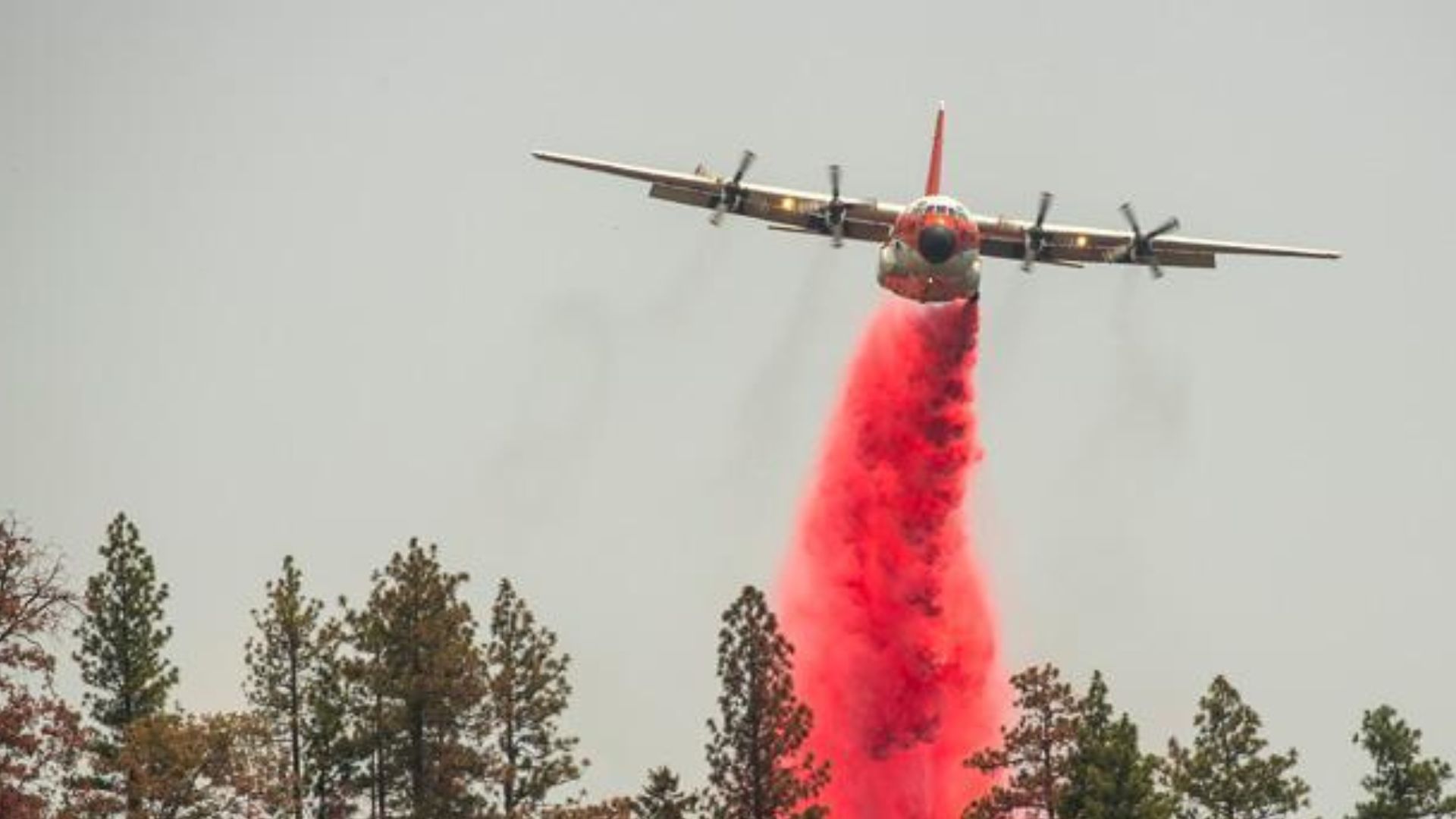 Testo lato sinistro: A Los Angeles, per contrastare i violenti incendi, viene sganciata dagli aerei una sostanza rosa. È PHOS-CHEK LC95, un ritardante composto da sali e fertilizzanti, che rallenta la propagazione delle fiamme. Ma quali sono i suoi possibili rischi per l’ambiente e gli ecosistemi?