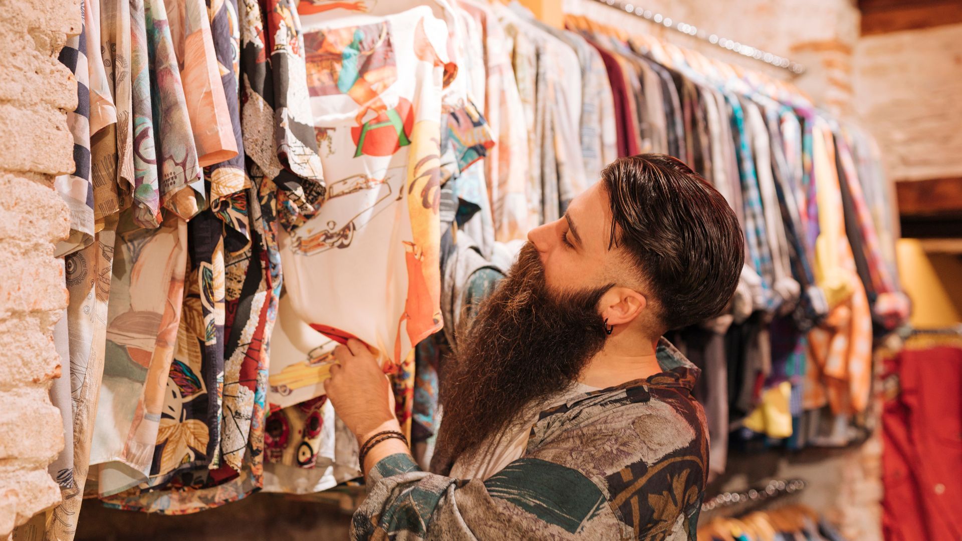 Testo lato sinistro: La moda circolare sta rivoluzionando il settore fashion, con il mercato dell'usato in forte espansione. Entro il 2025, si prevede che un capo su dieci sarà di seconda mano, grazie all'adozione di modelli di business come resale, rental e repair.