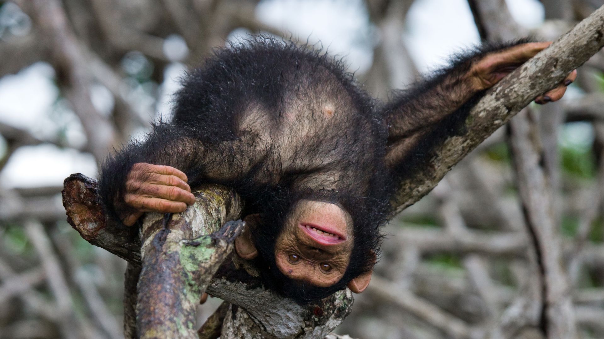 Testo lato sinistro: In Guinea-Bissau, alcuni scimpanzé sono stati ripresi mentre condividevano frutti fermentati, simili a un vero e proprio happy hour. Un gesto raro tra primati, che suggerisce rituali sociali sorprendenti.