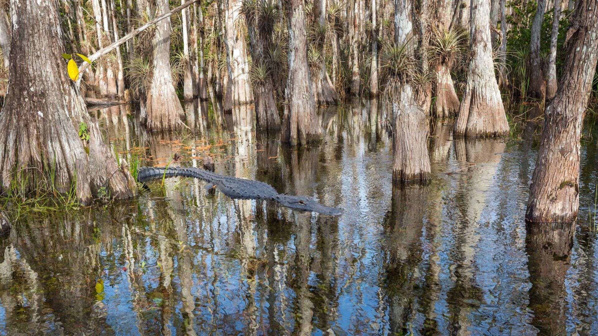 Testo lato sinistro: Le Everglades, la più grande zona umida degli Stati Uniti, stanno attraversando una delle peggiori siccità degli ultimi anni. I canali si prosciugano, i pesci muoiono e la fauna selvatica è costretta a migrare, mettendo a rischio l’equilibrio di un ecosistema unico.