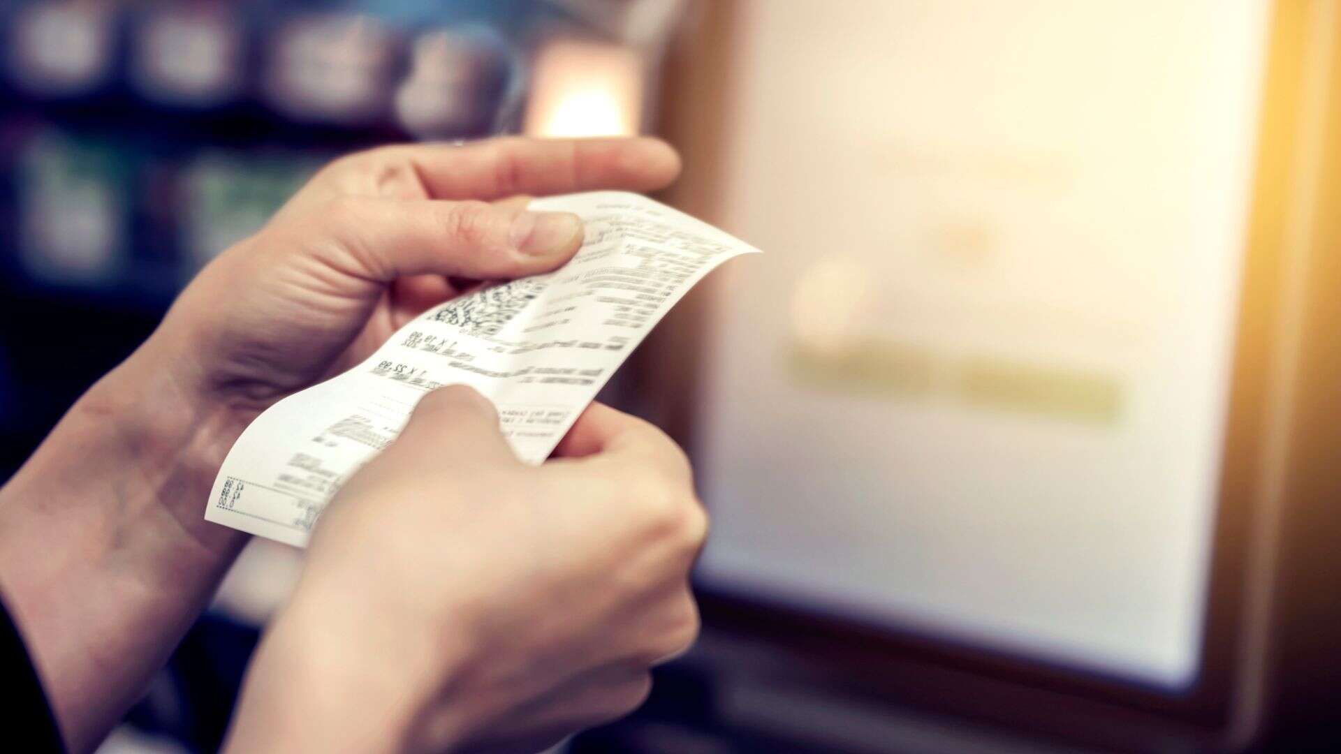 Testo lato sinistro: Dal 2027 inizia l'addio graduale agli scontrini cartacei: si parte con la grande distribuzione, poi le altre attività. Gli scontrini diventeranno digitali e arriveranno via email o SMS. Una svolta pensata anche per l’ambiente.