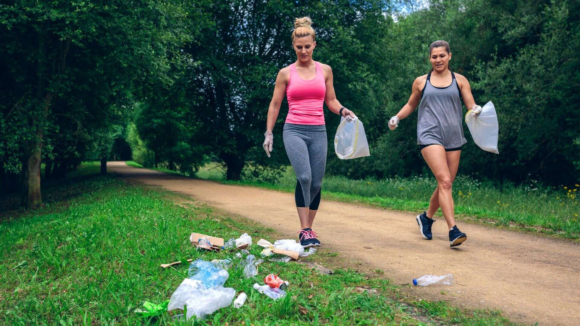 Testo lato sinistro: Correre o camminare mentre si raccolgono rifiuti: il plogging è l’allenamento che fa bene al corpo e alla natura. Nato in Svezia nel 2016, si è diffuso in oltre 40 Paesi. Coinvolge muscoli, coscienza ecologica e voglia di cambiare il mondo.