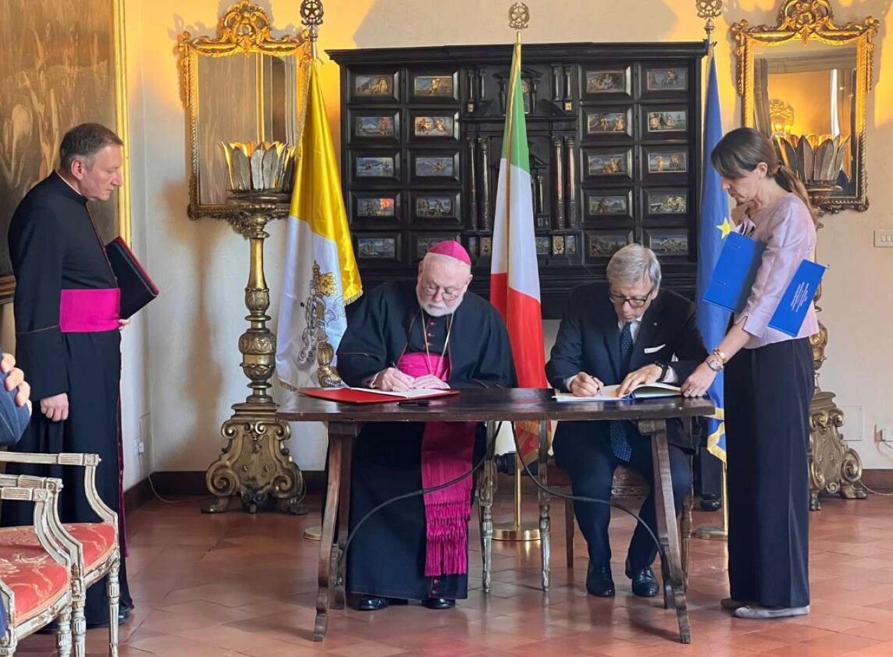 A firmare l’accordo – che diventerà ufficialmente valido quando entrambe le parti avranno completato le procedure interne – sono stati, per la Santa Sede, l’Arcivescovo Paul Richard Gallagher, Segretario per i Rapporti con gli Stati e le Organizzazioni Internazionali, e per l’Italia, l’Ambasciatore Francesco Di Nitto, rappresentante italiano presso la Santa Sede.