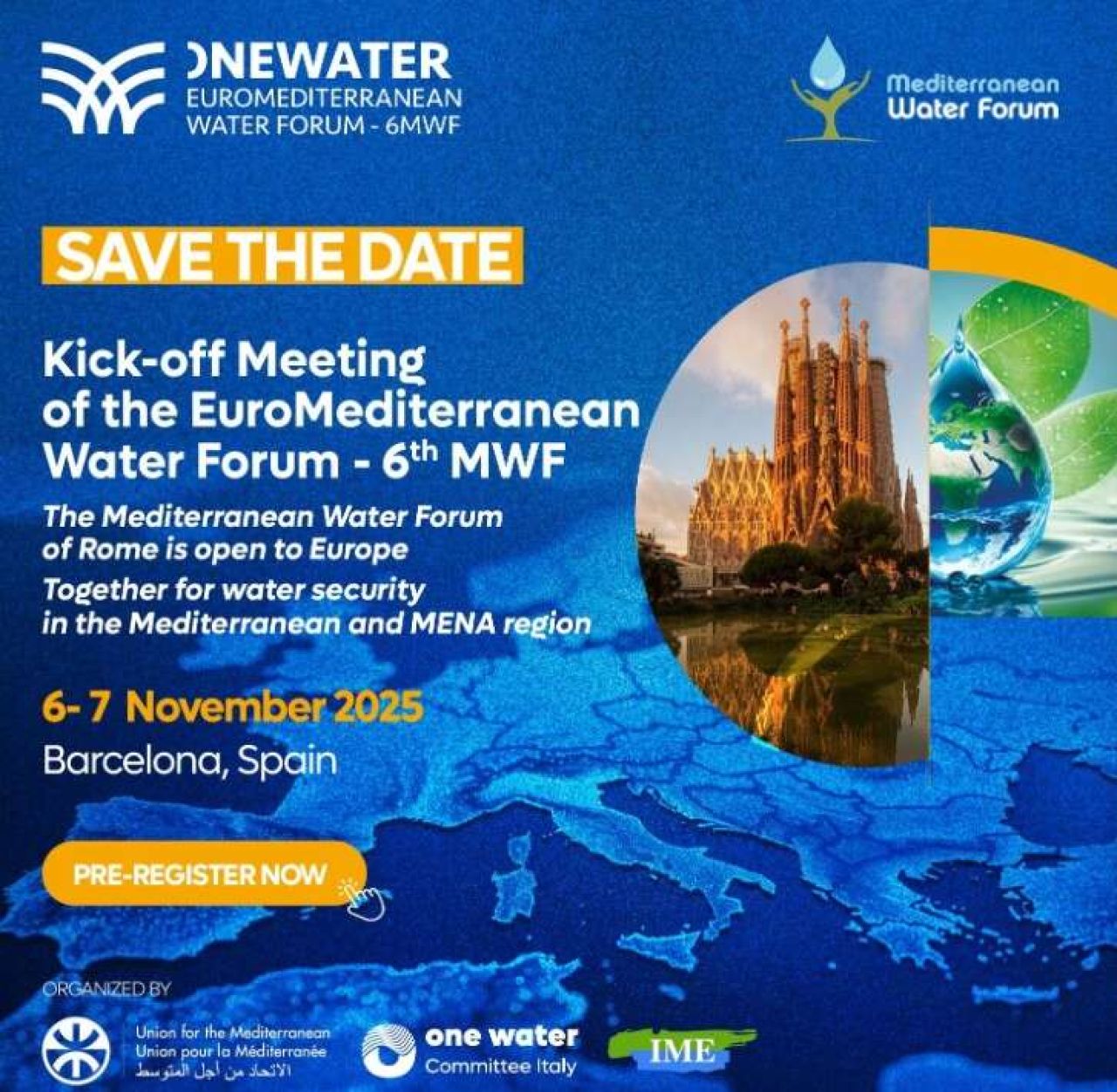 Si avvicina a grandi passi il Forum euromediterraneo dell'acqua, che si svolgerà presso la Nuvola dell’Eur (a Roma) dal 29 settembre al 2 ottobre del 2026 con delegazione da 43 Stati europei e mediterranei. Dopo la presentazione alla Fao dei giorni scorsi a cura del ministro Tajani, e la conferenza internazionale svoltasi due giorni fa a Firenze – nel Salone dei Cinquecento di Palazzo Vecchio – oggi a Barcellona si è tenuto il kick-off meeting.