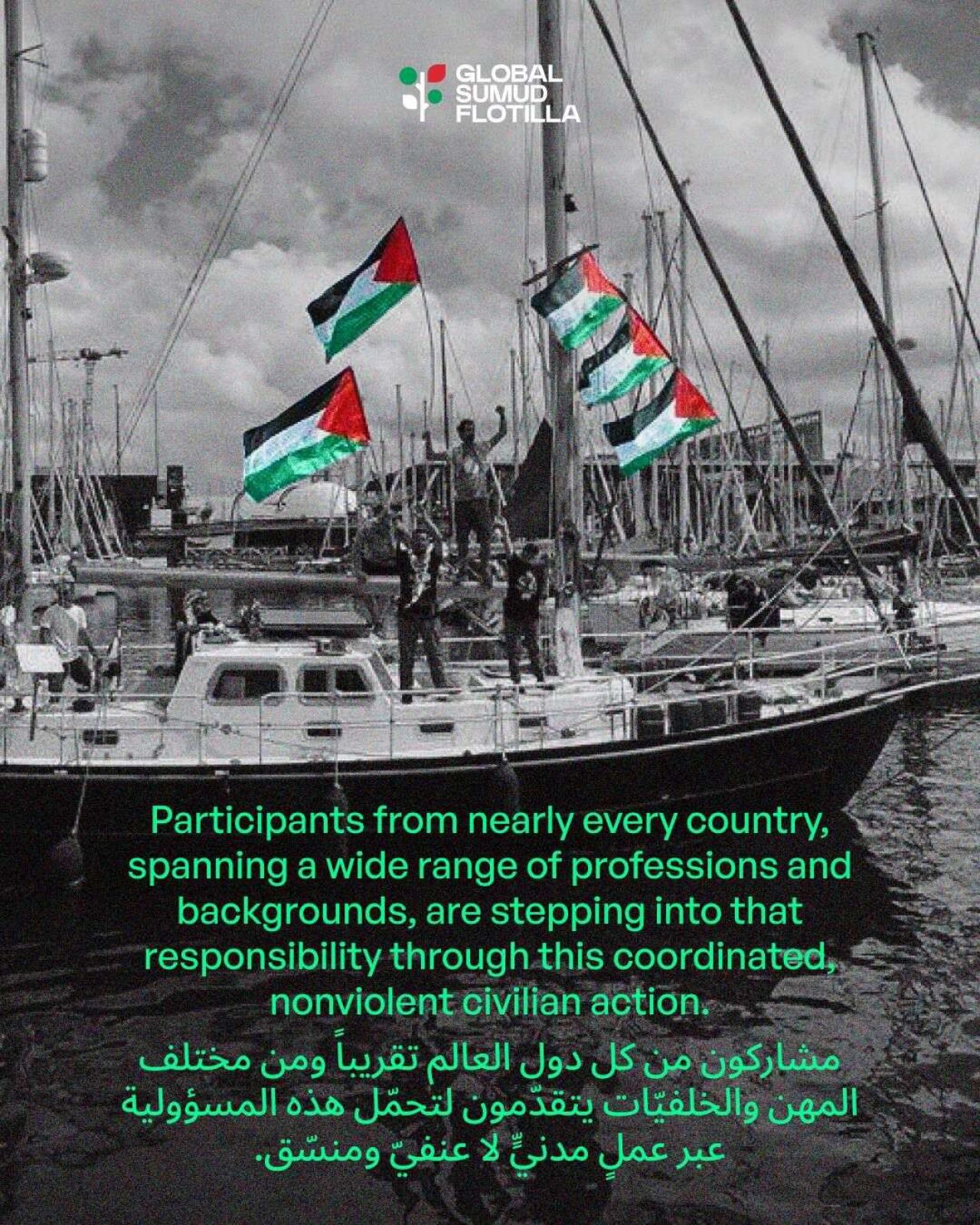 «Per decenni, governi e istituzioni internazionali hanno rivendicato la responsabilità di proteggere i civili e difendere il diritto internazionale. A Gaza, questi mandati sono stati ignorati e sono falliti in modo catastrofico – spiega Saif Abukeshek, membro del Comitato direttivo della Global Sumud Flotilla – Questa missione nasce da quel fallimento. Quando le istituzioni abbandonano i loro obblighi legali e morali, tale responsabilità ricade sulle persone».