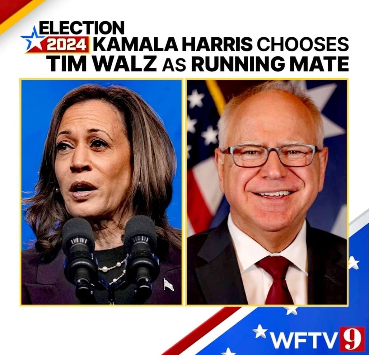 L’attuale vicepresidente degli Usa, Kamala Harris, che sarà la candidata democratica contro Donald Trump dopo la soffertissima rinuncia di Joe Biden a correre per un secondo mandato, ha annunciato di aver scelto con me suo vicepresidente in caso di vittoria Tim Walz, sergente maggiore in pensione della Guardia nazionale dell'esercito, che è stato parlamentare al Congresso per 6 mandati e che attualmente il governatore del Minnesota, incarico che ricopre dal 2019.