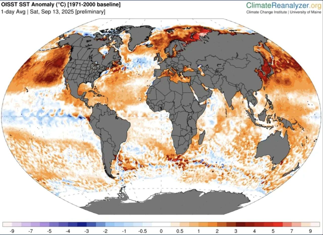 Il Mediterraneo, ormai, non fa neppure più notizia. Le conseguenze di queste ondate di calore marine (questo il termine scientifico) sono negative non soltanto per la circolazione generale dell'atmosfera e del clima, ma anche per gli ecosistemi marini. L'attuale condizione dei mari aumenta notevolmente la possibilità, nei prossimi mesi, di fenomeni meteorologici estremi».