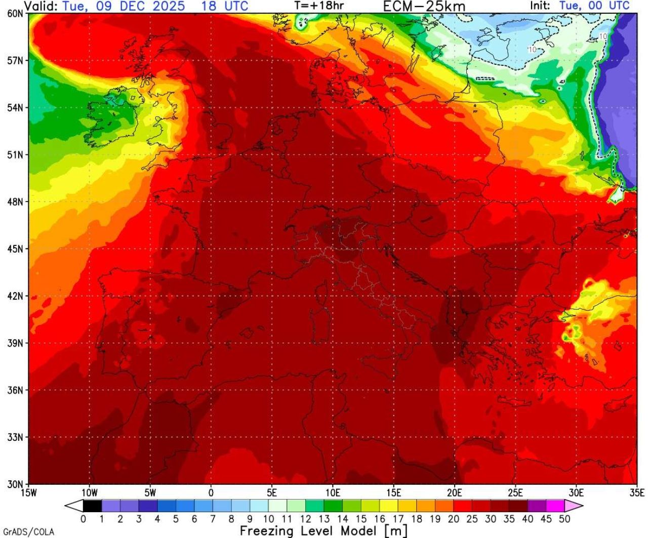 Oggi è martedì 9 dicembre, ma l’inverno sembra ancora molto lontano dalle porte del Belpaese, dato che lo zero termico ha raggiunto i 3500-3600 metri sulle Alpi. «Valori decisamente anomali anche sul resto d'Europa e d'Italia dove lo zero termico ha oscillato tra i 2500 e i 3500 metri», segnalano dal Laboratorio di monitoraggio e modellistica ambientale per lo sviluppo sostenibile (Lamma), consorzio pubblico nato dall’impegno congiunto di Regione Toscana e Consiglio nazionale delle ricerche (Cnr).