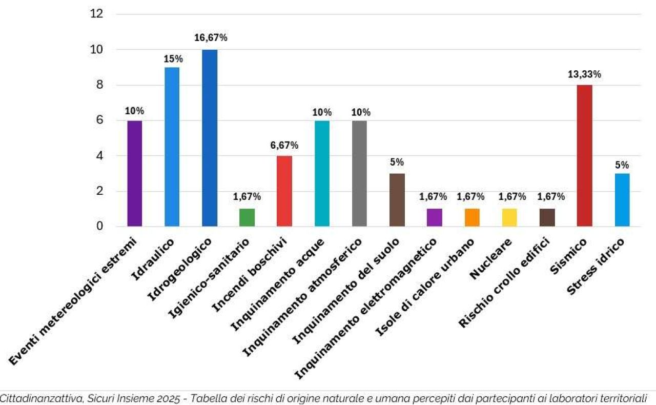 «La conoscenza del territorio ed una memoria attiva sulle emergenze già vissute dalle comunità sono fondamentali per prepararsi ad eventi estremi ed alle nuove emergenze – conclude Raniero Maggini, responsabile delle Politiche dell’ambiente e del territorio di Cittadinanzattiva – I cittadini che hanno già risposto a “Sicuri insieme” hanno segnalato un’ampia gamma di rischi. È necessario garantire la partecipazione delle comunità alla costruzione ed al successivo aggiornamento del Piano di Protezione Civile, che i fattori di rischio siano noti a tutti, che ciascun cittadino abbia le informazioni utili ad affrontare in modo efficace gli effetti prodotti dalle fragilità dei territori. Ognuno di noi è Protezione Civile e la partecipazione attorno a questi temi va promossa e sostenuta».