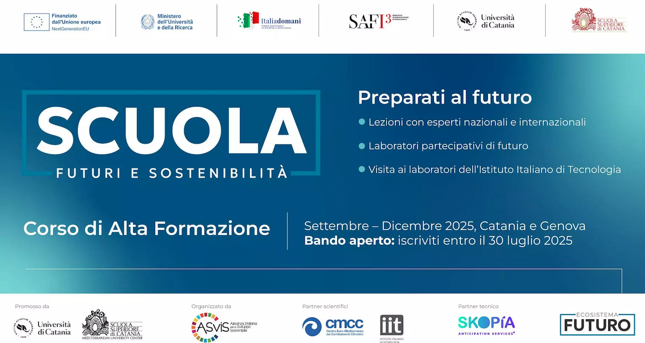 È partita oggi a Catania la prima edizione della Scuola di Alta Formazione “Futuri e Sostenibilità”, promossa dall’ASviS e dalla Scuola Superiore dell’Università di Catania. Si tratta di una delle prime realizzazioni di "Ecosistema Futuro", la nuova iniziativa di ASviS. Come già anticipato nelle scorse settimane dagli organizzatori, quello avviato è un percorso interdisciplinare e laboratoriale di 120 ore, aperto da settembre a dicembre a 50 studenti con l’obiettivo di formare giovani (anche giovani manager) capaci di orientare il cambiamento, leggere i megatrend globali, gestire l’incertezza e costruire scenari di lungo periodo con attività di foresight, system thinking e progettazione trasformativa.