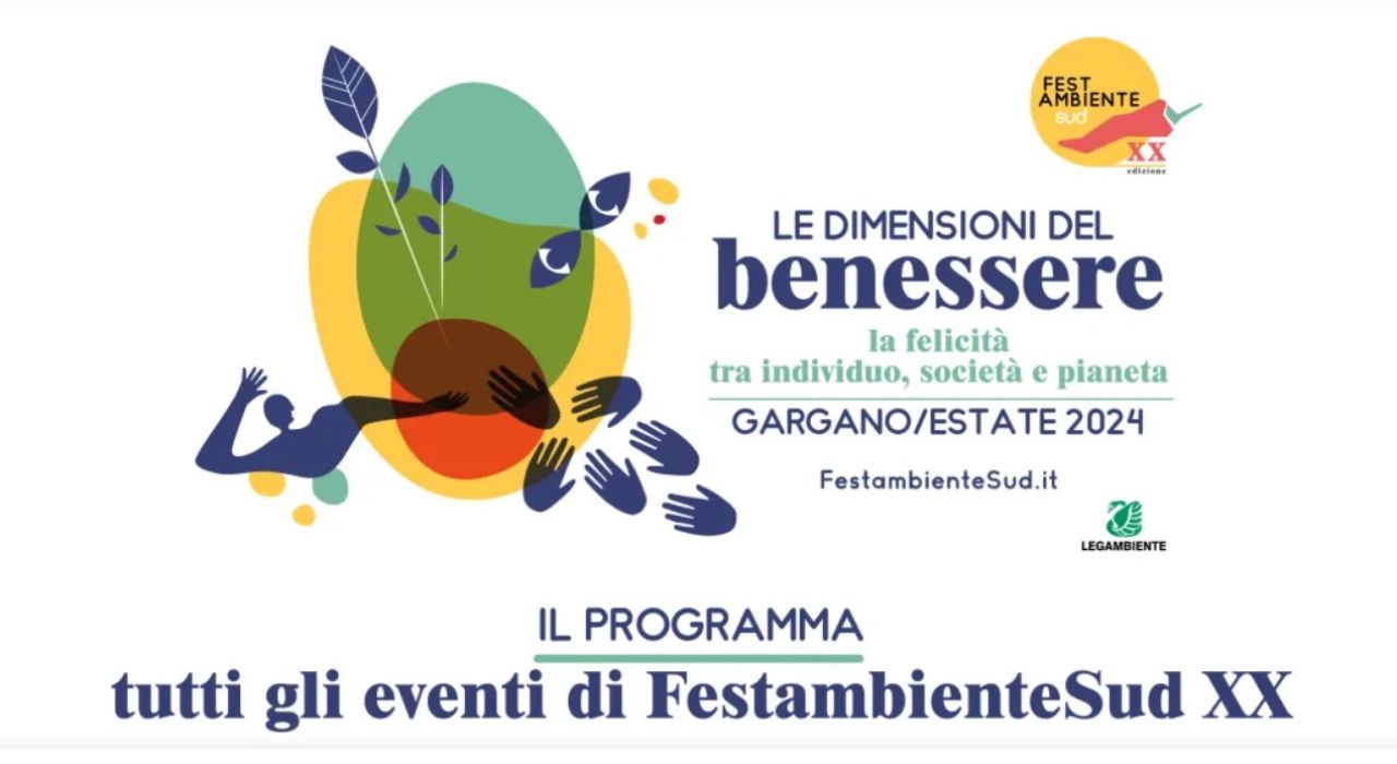 Le dimensioni del benessere nella società, nel pianeta o tra le persone sono al centro dell’edizione 2024 di FestambienteSud. La felicità e il benessere rappresentano il desiderio più ambito da ogni individuo, ma sono anche quanto promettono alle comunità le costituzioni di tutto il mondo, la politica, le teorie utopistiche, le religioni, la scienza e l’economia dei consumi. Oggi, fortunatamente sta crescendo anche la consapevolezza che non ci può essere benessere per le comunità umane senza il benessere del pianeta e che, in generale, il nemico del benessere è lo sfruttamento, sia quando esso si esprime a discapito degli altri individui, sia quando è esercitato a discapito di altre comunità, sia quando si esercita nei confronti della natura. Per costruire felicità e benessere, pertanto, non si può fare a meno di mantenere un delicato equilibrio tra natura, comunità e individui.