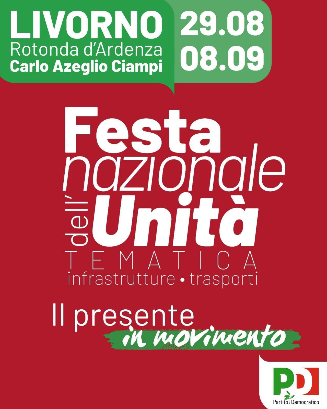 Da oggi all’8 settembre Livorno – con la sua Rotonda di Ardenza “Carlo Azeglio Ciampi” – sarà la capitale del confronto nazionale sulla tematica delle infrastrutture e trasporti con la Festa Nazionale dell’Unità, intitolata “Il presente in movimento”. Un appuntamento di politica, cultura e partecipazione che vedrà la presenza di parlamentari europei e nazionali, amministratori locali, rappresentanti del mondo produttivo, sindacati, associazioni e società civile.