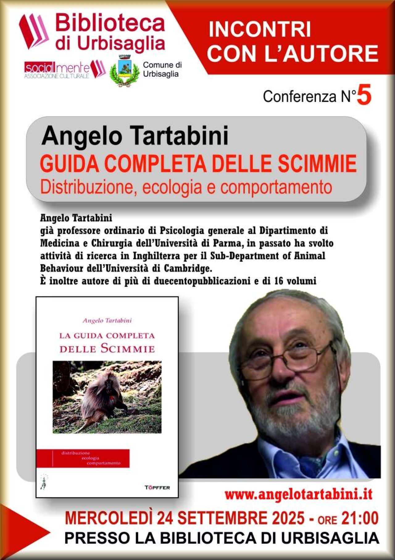 Angelo Tartabini porta a Urbisaglia la sua “Guida completa delle scimmie”