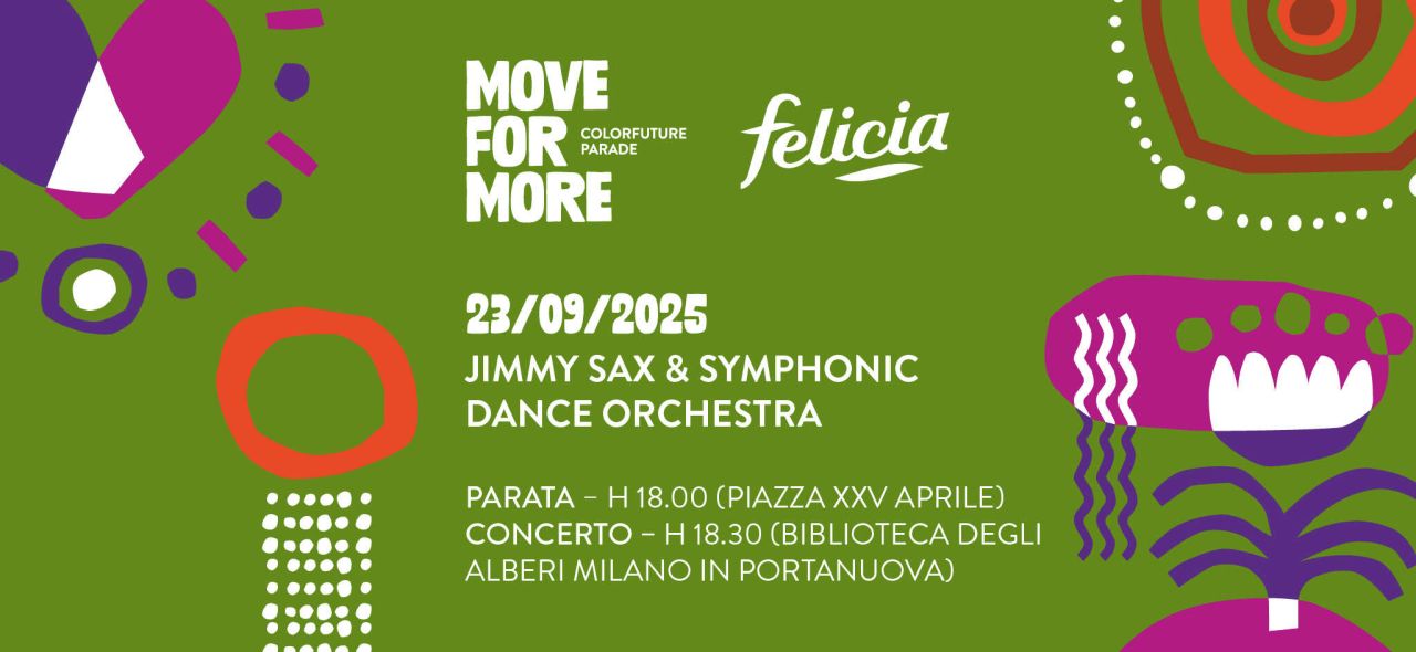 Un grande live show porterà per la prima volta in Italia un’esperienza unica che unisce performance e musica dal vivo. Il musicista internazionale Jimmy Sax guiderà la parata con il suo sassofono insieme a 300 performer e sarà protagonista di un concerto aperto a tutti alla Biblioteca degli Alberi di Milano, nel cuore di Portanuova. Sul palco con lui la Symphonic Dance Orchestra diretta dal Maestro Vincenzo Sorrentino, per un’esplosione di ritmo contagioso capace di trasformare in musica la forza del movimento e la gioia della partecipazione. «Per me la musica è un linguaggio universale, capace di unire le persone oltre le parole – dichiara Jimmy Sax. Vivremo insieme una performance inedita ed estremamente coinvolgente, con la gioia e l’allegria come filo conduttore. Per me sarà emozionante far parte di una vibrazione condivisa ed è un privilegio contribuire a un evento che parla di cambiamento e del futuro del nostro Pianeta».