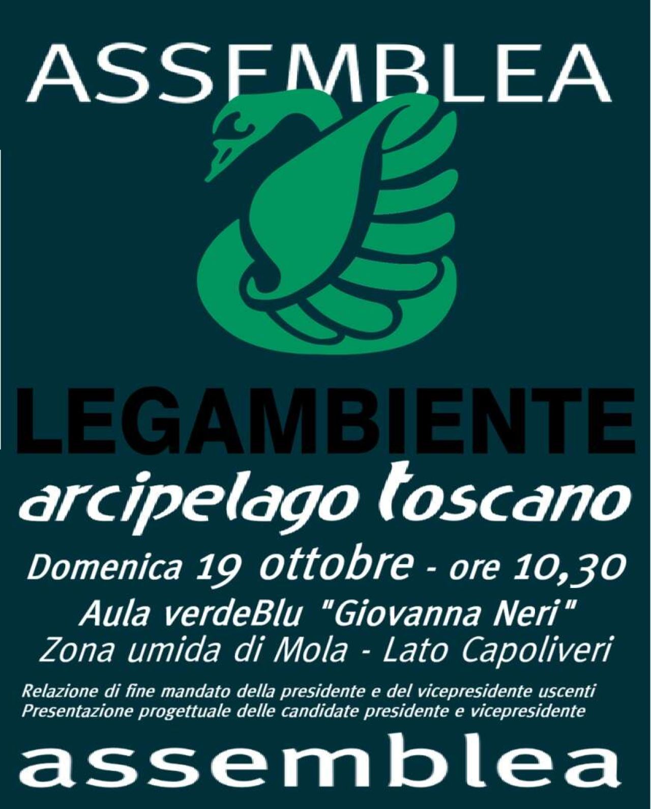 Domenica 19 ottobre alle ore 10.30, all’Aula VerdeBlu “Giovanna Neri” nell’area umida di Mola (lato Capoliveri) si terrà un’importante Assemblea del Circolo di Legambiente Arcipelago Toscano che segnerà la fine del lungo mandato della presidente Maria Frangioni e il passaggio di testimone a un altro presidente.