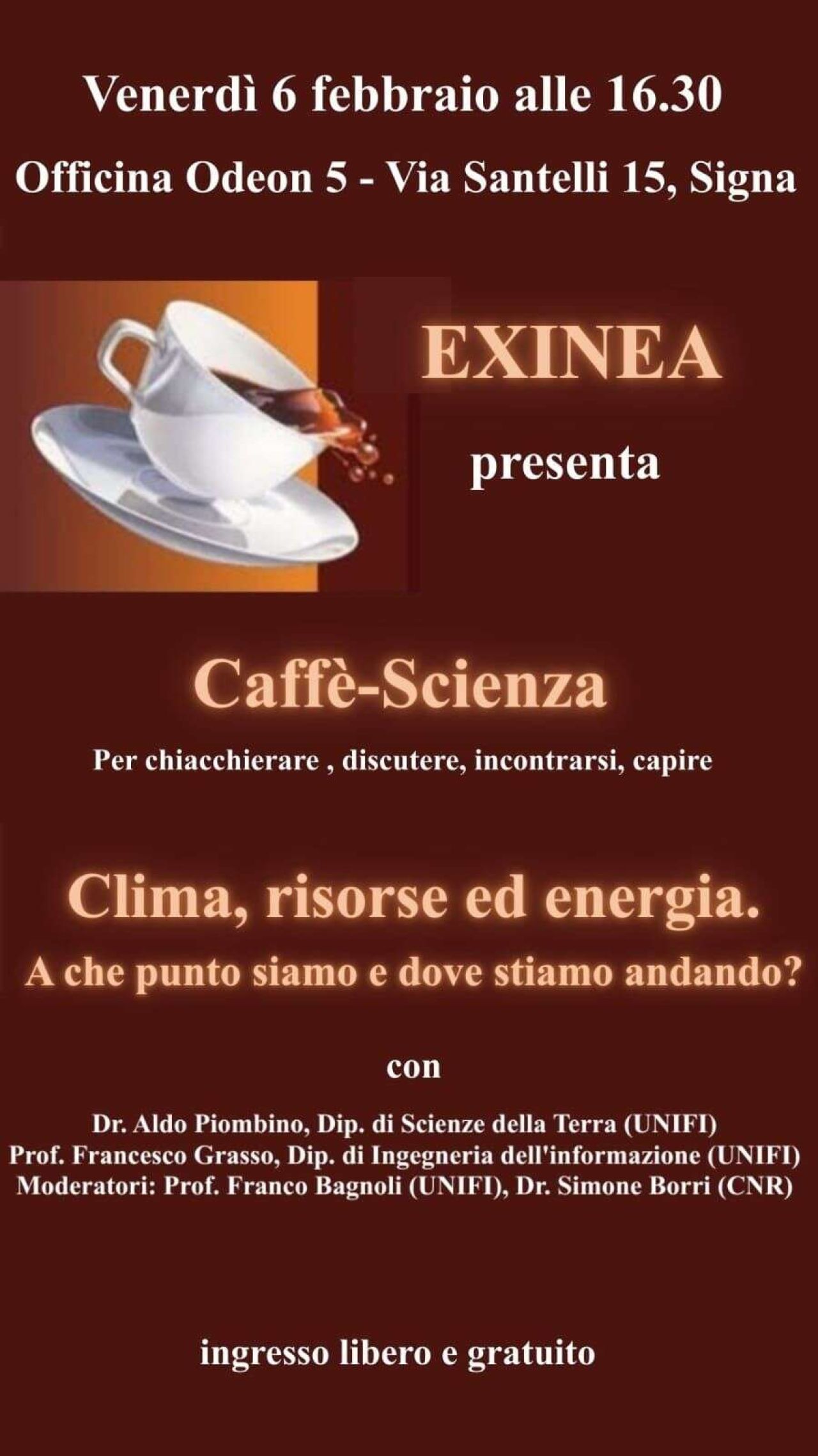 Un caffè per parlare di clima, risorse ed energia: torna a Signa l’appuntamento con “Caffè-Scienza”, il format promosso da Exinea per «chiacchierare, discutere, incontrarsi, capire» i grandi temi della transizione ecologica in modo accessibile ma rigoroso.