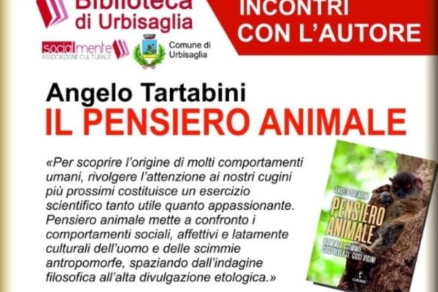 La biblioteca di Urbisaglia (MC), gestita dall’associazione culturale Socialmente e col patrocinio del Comune, dopo l’appuntamento dello scorso 9 maggio, per mercoledì 12 giugno (ore 21) ha in agenda una nuova serata di approfondimento sul pensiero animale, con protagonista il celebre psicologo Angelo Tartabini.