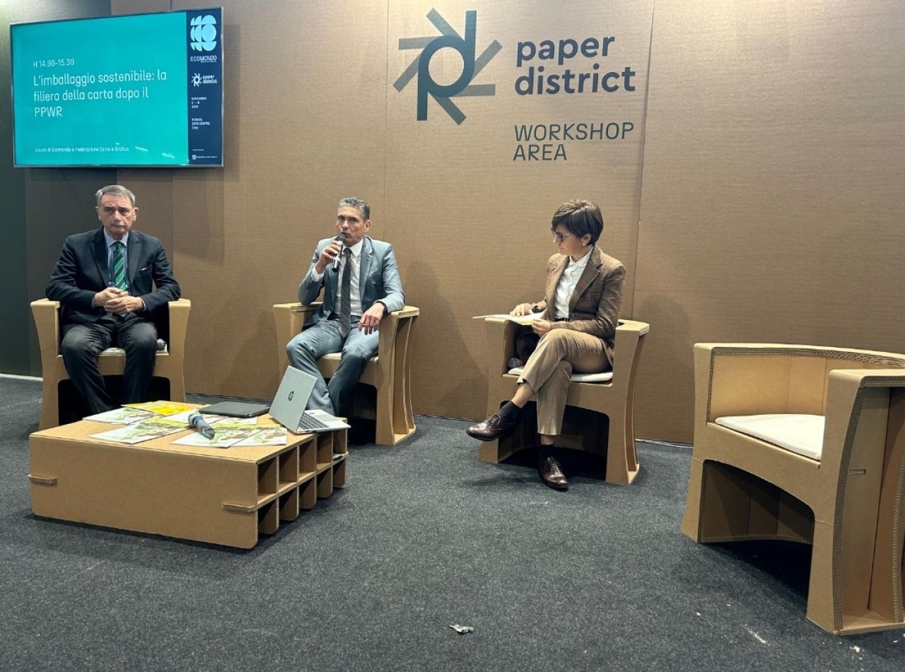L’Italia è il secondo Paese produttore di carta e cartone in Europa, dopo la Germania, con il 10,2% dei volumi complessivi dell’area. Siamo leader assoluti nella produzione di carte per uso domestico, igienico e sanitario con il 20,4% dei volumi europei, secondi nelle carte da involgere e terzi nel complesso delle carte e cartoni per imballaggio. L'industria italiana delle macchine per printing e converting è tra le prime al mondo, con una quota di mercato che si attesta intorno al 10%. L'industria cartotecnica trasformatrice italiana è 2° in Europa per fatturato, con una quota percentuale del 17,4%. Si tratta di una filiera industriale fortemente radicata sul territorio che si distingue per investimenti e impegno profusi nel miglioramento continuo del riciclo sia in termini di raccolta che di impiego della carta da riciclare utilizzata nei processi produttivi. Di questo e di molto altro si è discusso ieri alla fiera Ecomondo nel corso della conferenza di apertura del Paper district dal titolo: “L’imballaggio sostenibile: la filiera della carta dopo il Ppwr”. All’incontro dedicato alle ripercussioni del Packaging and packaging waste regulation e al relativo settore hanno partecipato i principali attori della filiera della carta, tra i quali il presidente di Federazione carta e grafica Michele Bianchi e il dg Comieco Carlo Montalbetti. I lavori sono stati introdotti dall’exhibition manager di Ecomondo Mauro delle Fratte, che ha sottolineato l’importanza del Paper district quale distretto industriale chiave nell’economia circolare del sistema manifatturiero italiano.
