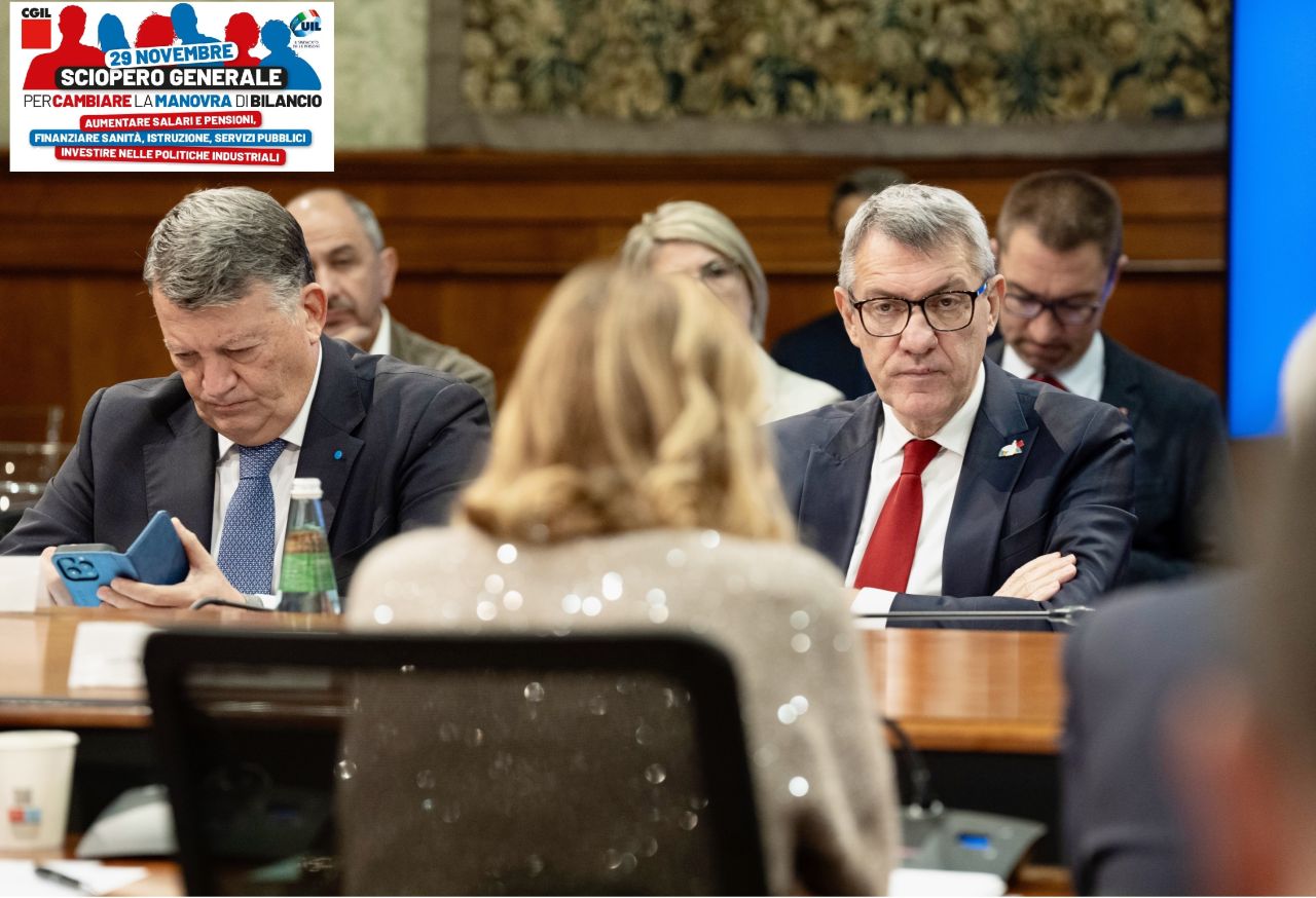 Quindi CGIL e Uil (la CISL non aderisce) confermano la proclamazione di 8 ore di sciopero generale, con manifestazioni territoriali, per il 29 novembre, per cambiare la manovra di bilancio, aumentare salari e pensioni, finanziare sanità, istruzione, servizi pubblici, investire nelle politiche industriali.