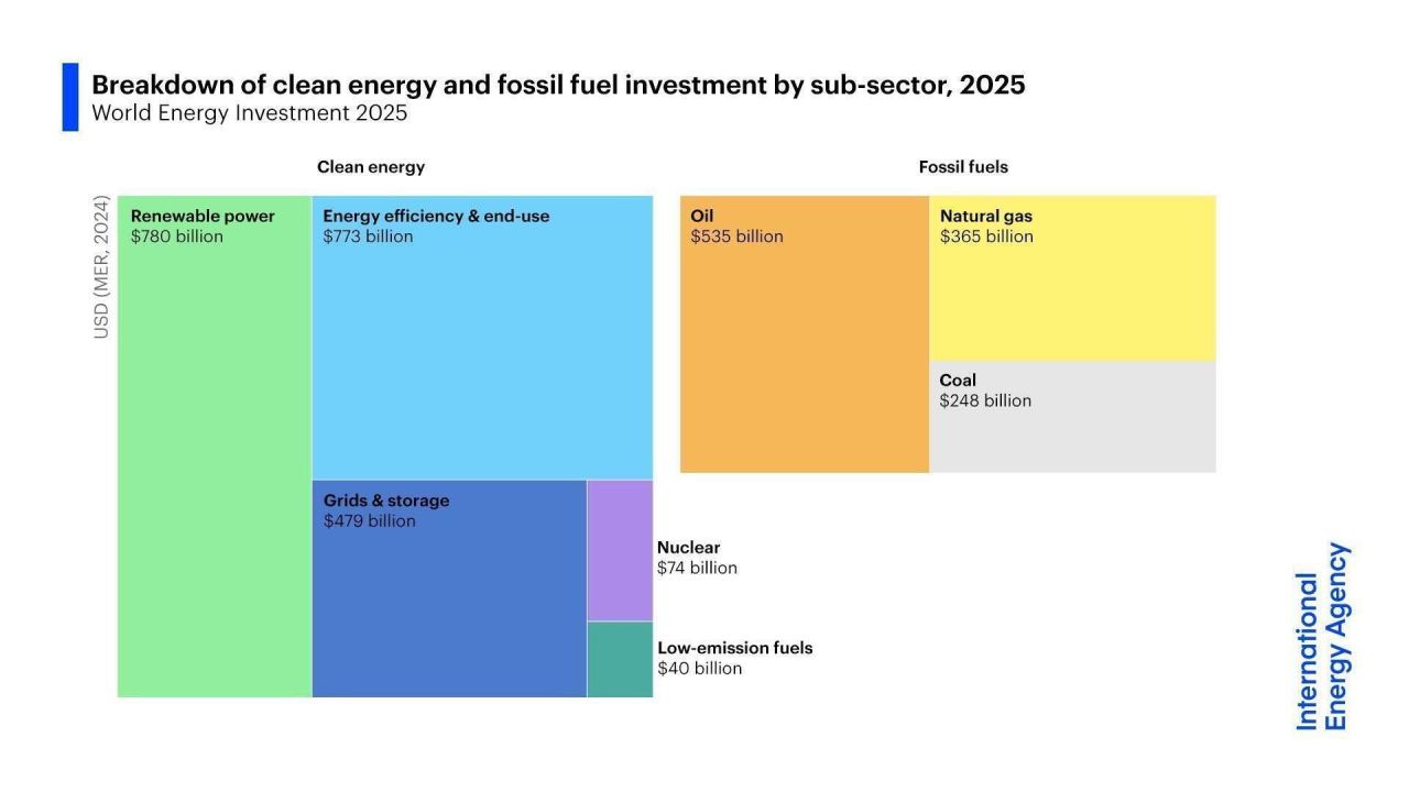 Punto primo: nonostante la scellerata politica statunitense centrata sul «drill, baby, drill» trumpiano, il calo della produzione dei giacimenti petroliferi e di gas esistenti ha subìto a livello globale un’accelerazione, con implicazioni per i mercati e la sicurezza energetica. Questa diminuzione è certificata dall’Agenzia internazionale dell’energia (International Energy Agency, Iea), che sottolinea un secondo punto, non a caso messo in evidenza da un sito attento alle politiche relative alla crisi climatica come Carbon brief: «Non sono necessari nuovi giacimenti di petrolio e gas» se il riscaldamento globale viene limitato a 1,5°C. Gli Stati Uniti sono usciti dagli Accordi di Parigi dando uno scossone alle politiche sul clima che ha travalicato i confini americani? Anche i governi europei ultimamente non stanno fornendo una bella immagine di sé in quanto a impegni per il taglio delle emissioni entro il 2040? E allora ecco il terzo e ultimo punto, che viene confermato sempre dall’Iea e che mostra come il mondo stia andando in una direzione ben precisa, checché dicano e facciano i governi: gli investimenti globali nel settore energetico sono destinati ad aumentare fino a raggiungere i 3,3 trilioni di dollari nel 2025; di questi, circa 2,2 trilioni di dollari saranno destinati alle energie rinnovabili, alle reti elettriche, allo stoccaggio, ai combustibili a basse emissioni, al nucleare, all’efficienza energetica e all’elettrificazione; un terzo della cifra totale per il settore energetico e la metà di quella per l’energia pulita, ovvero circa 1,1 trilioni di dollari, saranno invece destinati al petrolio, al gas e al carbone.