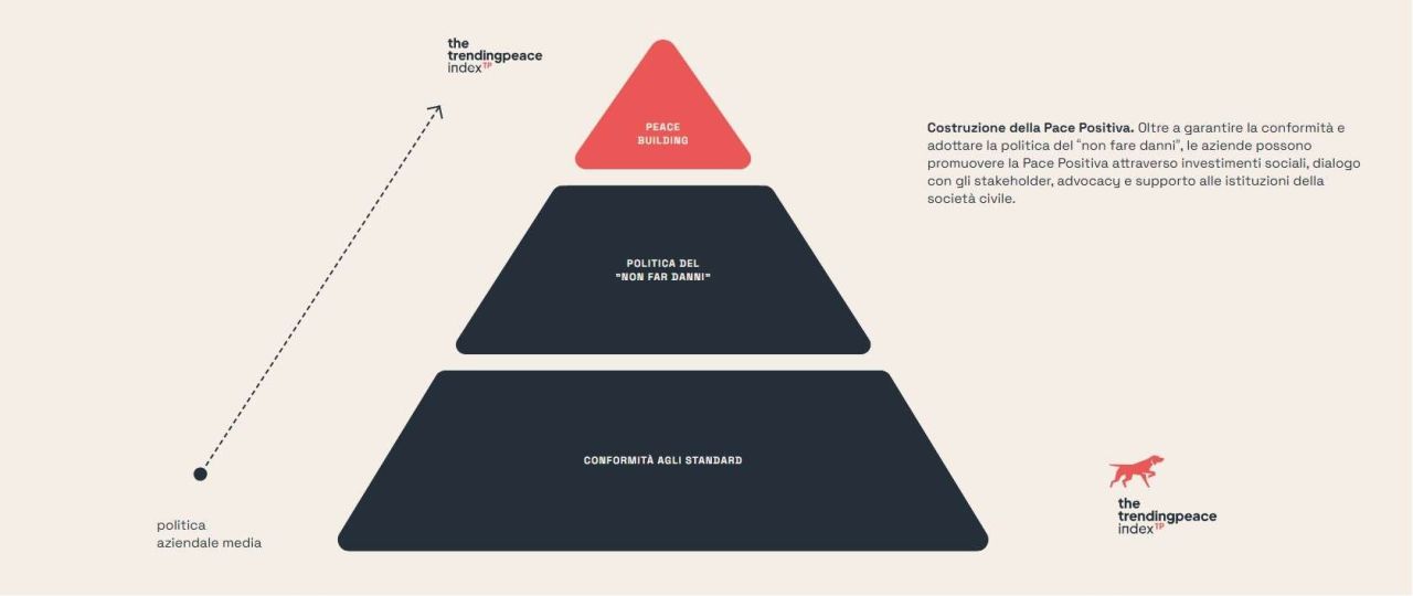 Per questo il Tp Index valuta anche la Corporate peace responsibility, ossia l’impegno concreto dell’azienda nel contribuire alla costruzione della pace: tutte le azioni che generano impatti positivi sull’azienda stessa, sui territori, sulle persone, sulla trasparenza e sulle relazioni. L’idea è quella di integrare la P di peace con i criteri Esg per un più ampio, concreto e completo posizionamento su una tematica strategica e socialmente rilevante: Esgp - Environment, social, governance and peace.