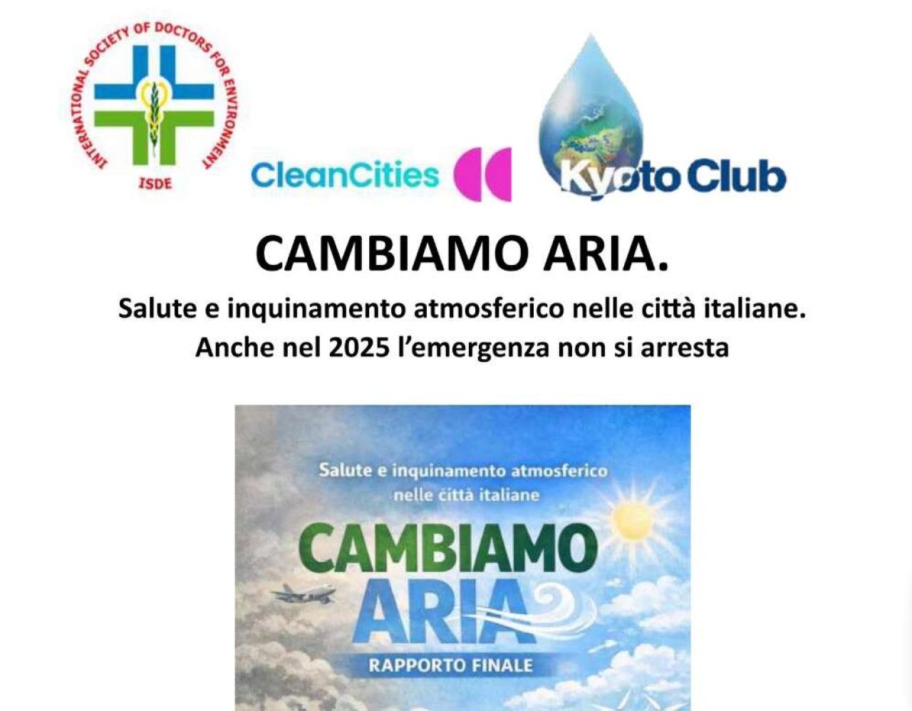 «I dati del 2025 confermano senza ambiguità che l’inquinamento atmosferico nelle città italiane è un’emergenza sanitaria strutturale», dichiara Roberto Romizi, presidente di ISDE Italia: «Rimandare ancora politiche efficaci significa accettare un carico evitabile di malattie e di morti premature».