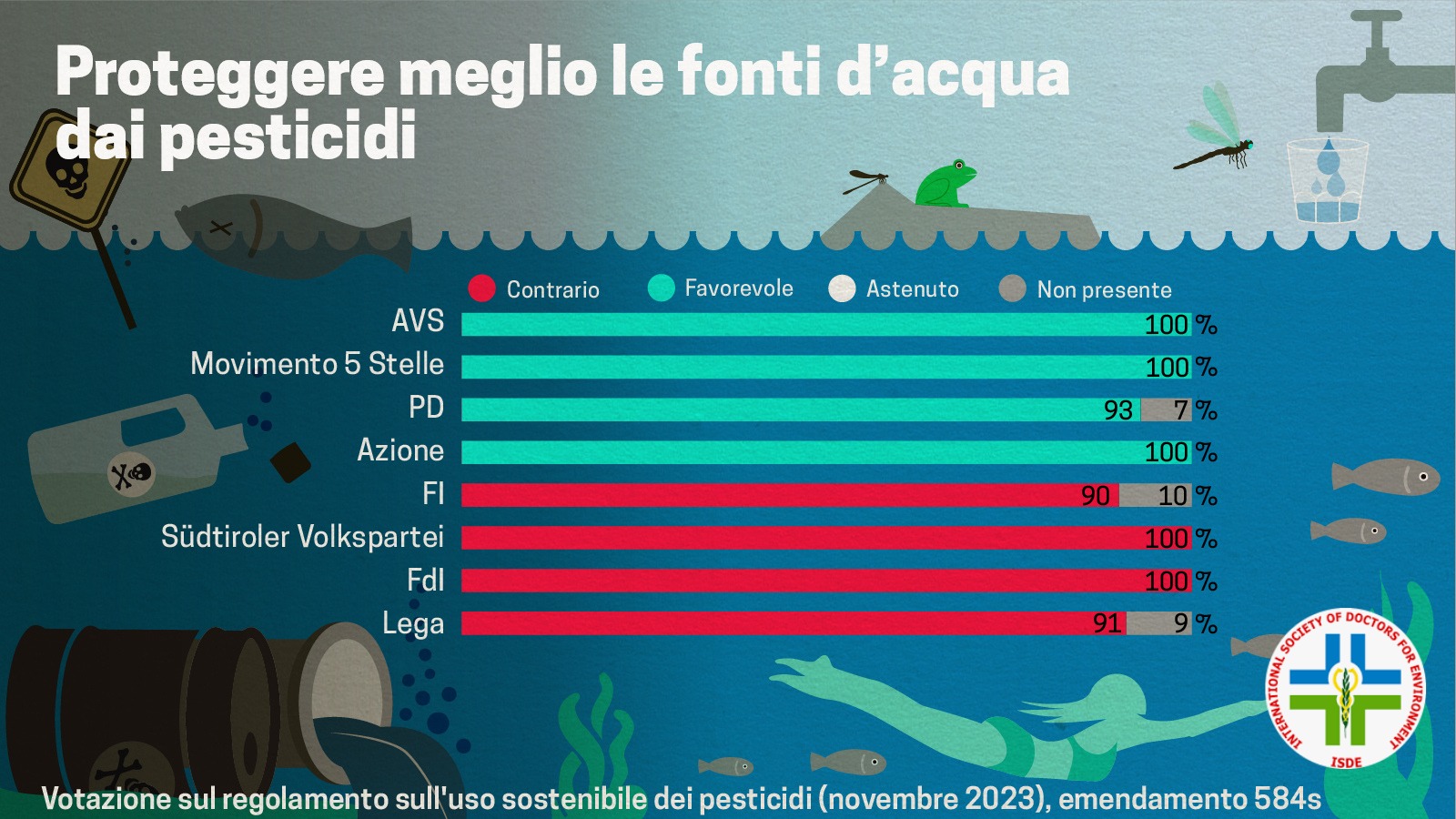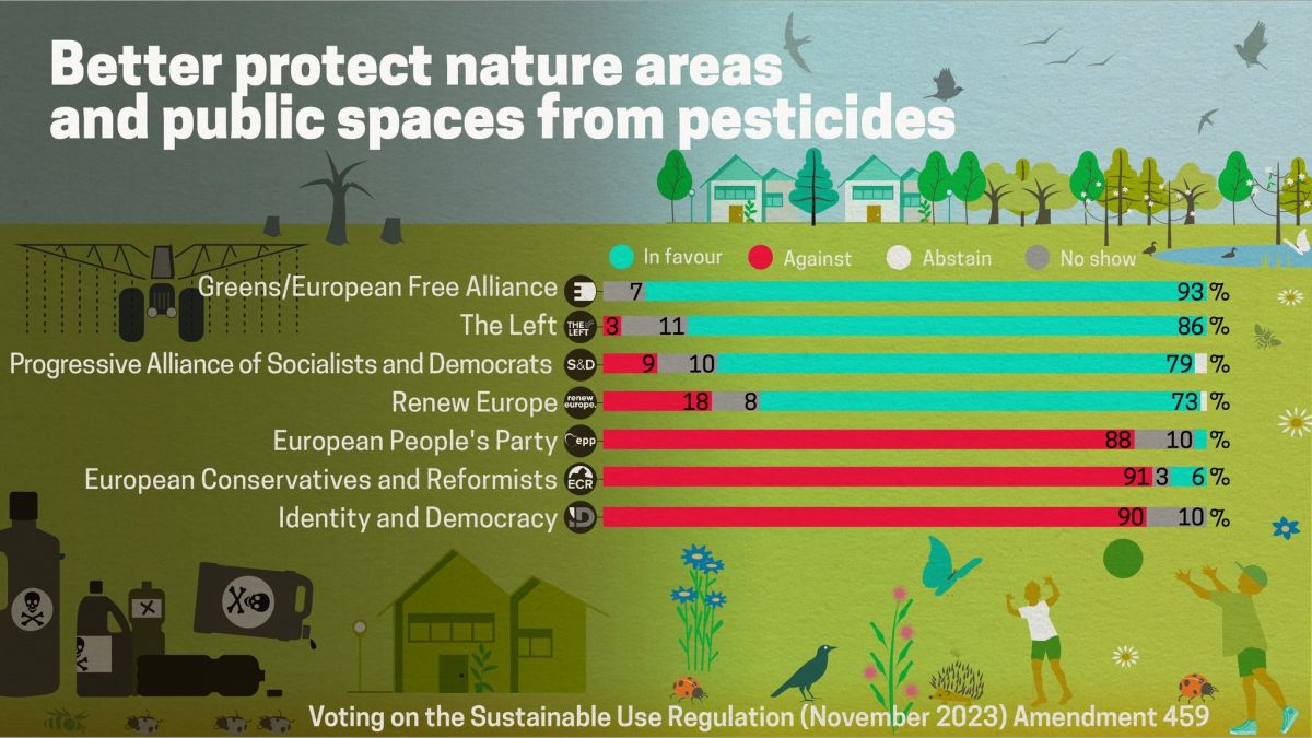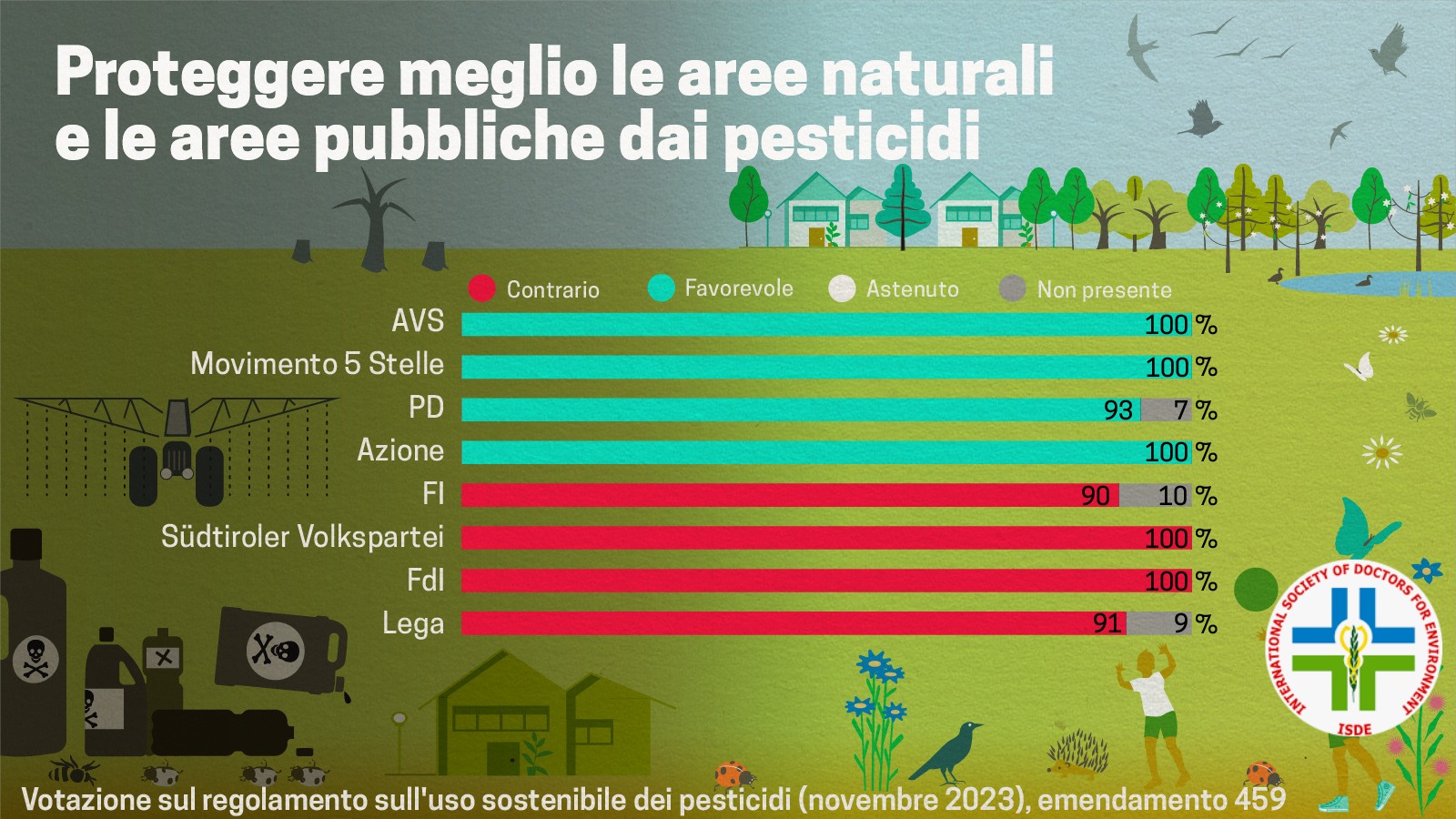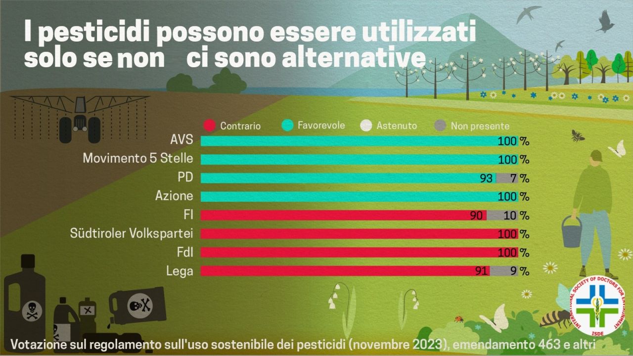 PAN Europe (Pesticide Action Network) e Friends of the Earth Europe spiegano che «Le 6 schede di valutazione mostrano quali gruppi politici ha votato per ridurre efficacemente i pesticidi. Chi ha votato per tutelare cittadini, ecosistemi e agricoltori? Chi ha attivamente minato le misure urgenti? L'analisi mostra che la maggioranza dei gruppi politici cristiano-democratici (PPE, di cui fa parte Forza Italia), conservatori di estrema destra (ECR, di cui fa parte Fratelli d’Italia) e l’ estrema destra sovranista (ID di cui fa parte la Lega ex nord) hanno votato coerentemente contro l'interesse pubblico».