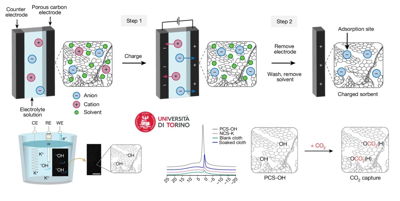 Lo studio “Capturing carbon dioxide from air with charged-sorbents”, pubblicato su Nature da un team di ricercatori delle università di Torino, Cambridge, Hong Kong e Cornell si è concentrato sulla Direct Air Capture (DAC, la cattura diretta dell'anidride carbonica dall'aria), una delle nuove tecnologie più promettenti nella lotta contro il cambiamento climatico.