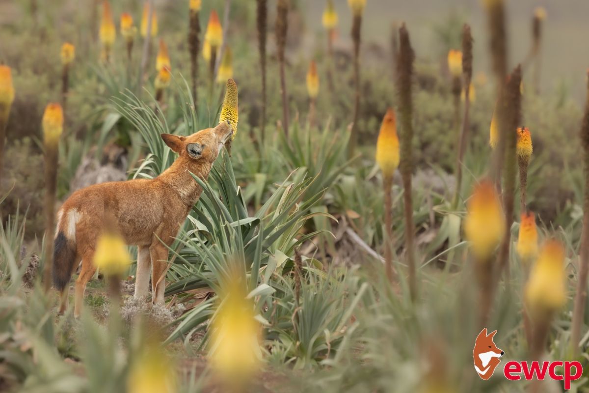 Ogni anno, durante il picco della stagione della fioritura, inizia uno spettacolo straordinario: i lupi etiopi, solitamente noti per la loro dieta a base di roditori carnivori, sono attratti anche dal nettare della Kniphofia foliosa. Sillero descrive questo eccezionale comportamento dei lupi degli altopiani etiopi: «Ho scoperto per la prima volta il nettare della Kniphofia foliosa quando ho visto i figli dei pastori nei Monti Bale leccare i fiori. In poco tempo, ne ho avuto un assaggio anch'io: il nettare era piacevolmente dolce. Quando in seguito ho visto i lupi fare lo stesso, ho capito che si stavano divertendo, attingendo a questa insolita fonte di energia. Sono soddisfatto che ora abbiamo segnalato questo comportamento come comune tra i lupi etiopi e ne abbiamo esplorato il significato ecologico».