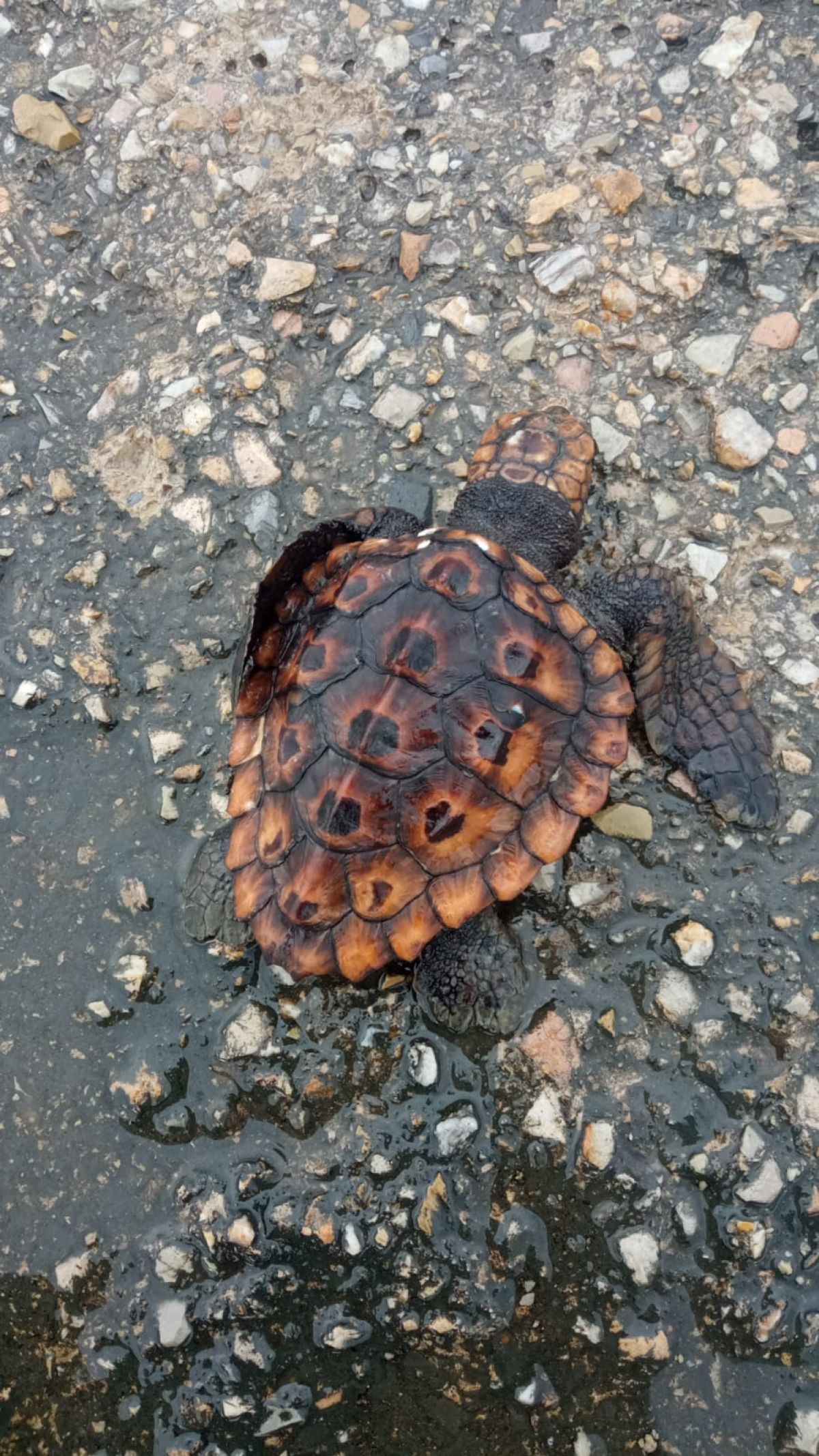 Purtroppo questa volta la tartarughina, che misurava in totale 13 centimetri (lunghezza carapace 10,5 cm, larghezza carapace 9 cm) era morta, apparentemente da poco.