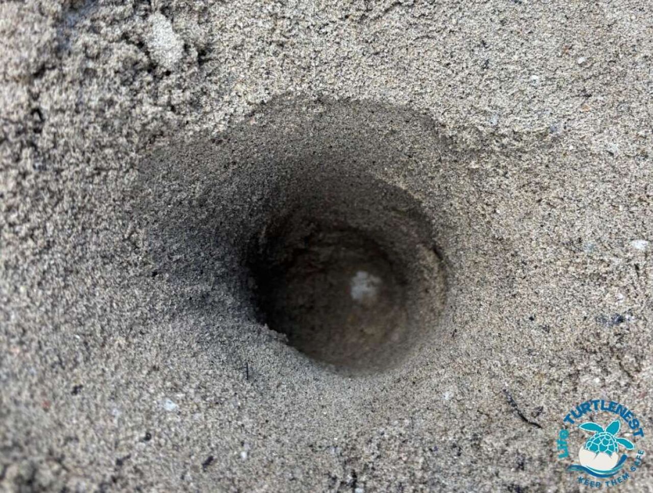 Le tracce della risalita sulla spiaggia e ridiscesa in mare della tartaruga marina erano quasi completamente sparite a causa della pioggia, del vento e del passaggio della gente sull’arenile, però si vedeva ancora il “body-pit”, la cavità che le tartarughe marine femmine scavano nella sabbia per prepararsi a deporre le uova.