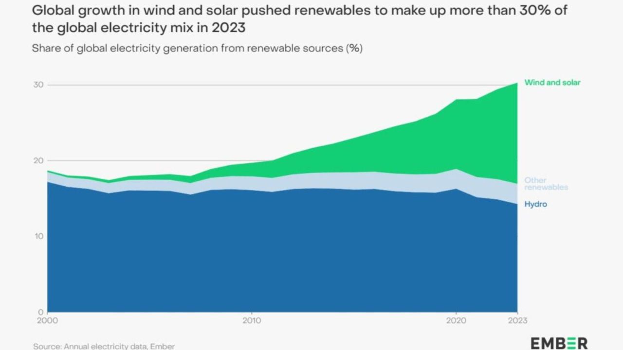 Nel 2023 il mondo ha superato per la prima volta il 30% di elettricità rinnovabile