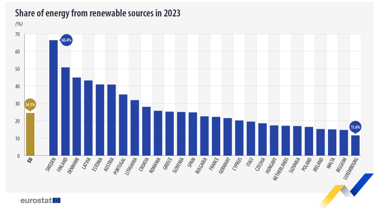 Tutto ciò emerge da un’indagine realizzata da Eurostat, dalla quale emerge che al di là degli ottimi risultati conseguiti dalla Svezia, che con il 66,4% di rinnovabili domina la classifica Ue, ancora molto c’è da fare su questo fronte in Europa e soprattutto in Italia. Sul podio ci sono la Finlandia con il 50,7% e la Danimarca con il 44,9%, mentre a metà classifica si piazzano Spagna (24,8%), Francia (22,2%) e Germania (21,5%)