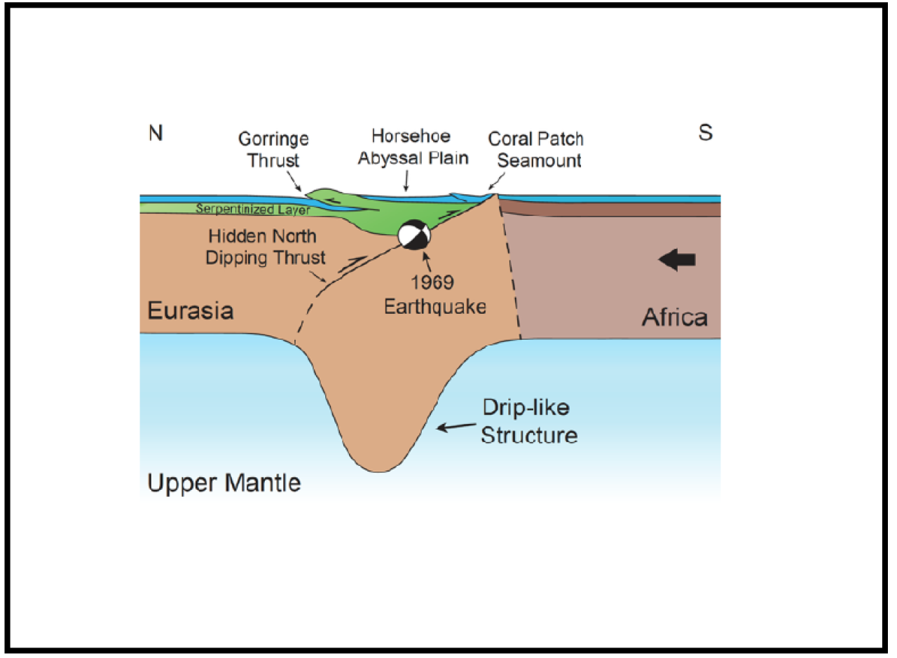 Grazie a sofisticate tecniche di tomografia sismica, tecnica che impiega le onde sismiche dei terremoti per capire la struttura della Terra a profondità elevate, i ricercatori hanno rilevato un’anomalia ad alta velocità fino a 250 km di profondità sotto la Piana Abissale di Horseshoe, nella regione a sud-ovest della Penisola Iberica, tra le placche africana ed eurasiatica, un’area nota per la sua intensa attività sismica, teatro di terremoti storici come quello di Lisbona del 1755 (M8.5 – 8.7) e quello di San Vincenzo del 1969 (M7.9).