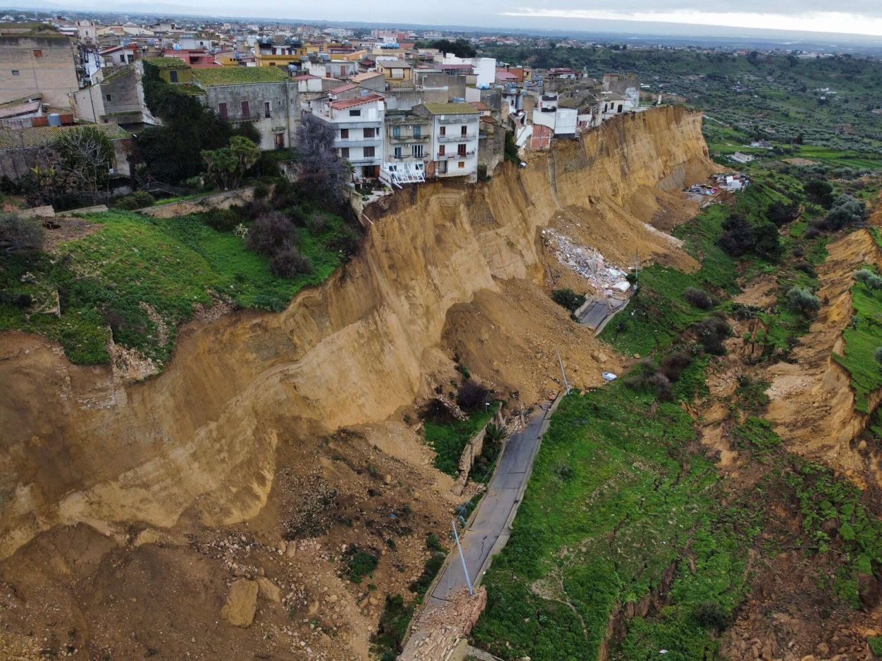 L’enorme frana in corso a Niscemi, in Sicilia, riguarda la porzione meridionale del costone su cui sorge l’abitato ed è in continua evoluzione. Nell’area sono presenti scarpate con altezze superiori ai 20 metri e numerose fenditure nel terreno che testimoniano l'attività del fenomeno, che ha subito una drastica evoluzione dopo il passaggio del ciclone Harry ma che rappresenta “un’eterna emergenza” da ormai trent’anni.