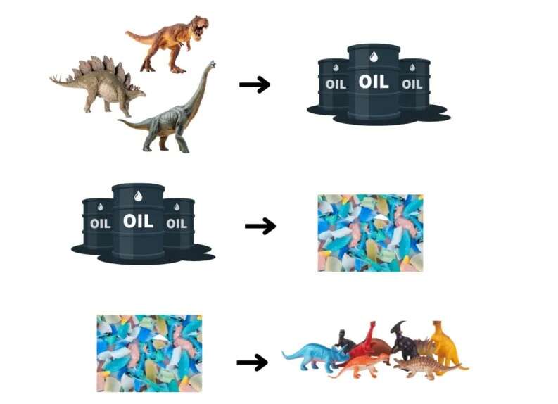 Forse ti è capitato di vedere questa simpatica immagine in cui i dinosauri si trasformano in petrolio, il petrolio diventa plastica e dalla plastica nascono di nuovo dinosauri giocattolo.