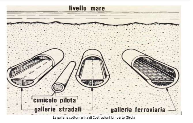 Il secondo progetto di "galleria sotterranea" sotto lo Stretto venne presentato dalla “Spa Costruzioni Umberto Girola” nel 1969 al Concorso statale Internazionale di idee per l'attraversamento stabile dello Stretto. Prevedeva la costruzione di un tunnel-pilota e di “2 gallerie - la prima autostradale a doppia corsia e la seconda ferroviaria a doppio binario - sottopassanti lo Stretto a 260 metri sotto il livello del mare. In quel concorso finito nel nulla, venne premiato anche il progetto della Grant Alan and Partners, Covell and Partners, Inbucon international: un tunnel a mezz'acqua, ancorato al fondo mediante cavi in acciaio della lunghezza di 3700 metri, e il progetto della Parson Brinckeroff, Quadre and Douglas di un tunnel incassato in diga sottomarina.