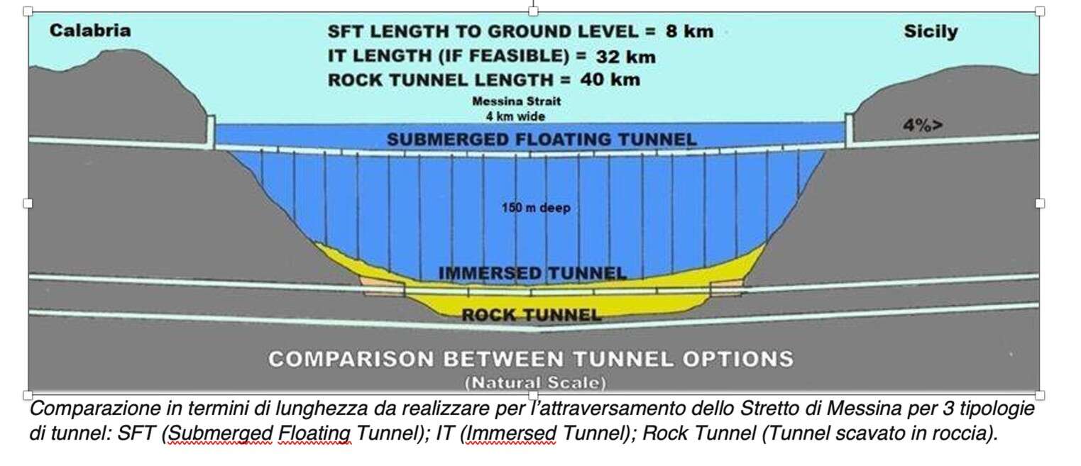 Ogni ipotesi di tunnel era stata bocciata non solo per evidenti e molto sottovalutati rischi sismici, ma anche per problemi di circolabilità stradale e ferroviaria per l’eccessiva lunghezza e la mastodontica realizzazione degli accessi tra le due sponde, l’elevato costo e i tempi di esecuzione. Insomma, la soluzione tunnel è considerata dagli esperti solo teoricamente fattibile, ma in realtà non realizzabile.