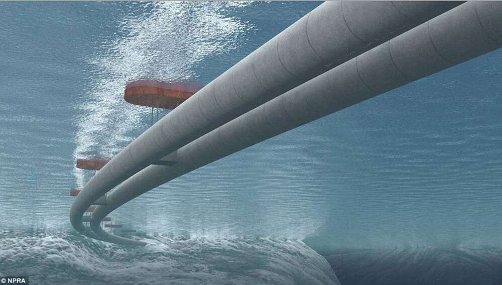 L’unico tunnel sottomarino in corso di progettazione è l’impresa del governo Norvegese lanciata ormai nel 2019 quando decise di realizzare per la prima volta un ponte sommerso galleggiante lungo 27 km a 30 metri sotto la superficie del mare, non poggiato sul fondale ma sorretto con il modello delle piattaforme di trivellazione petrolifere off-shore.