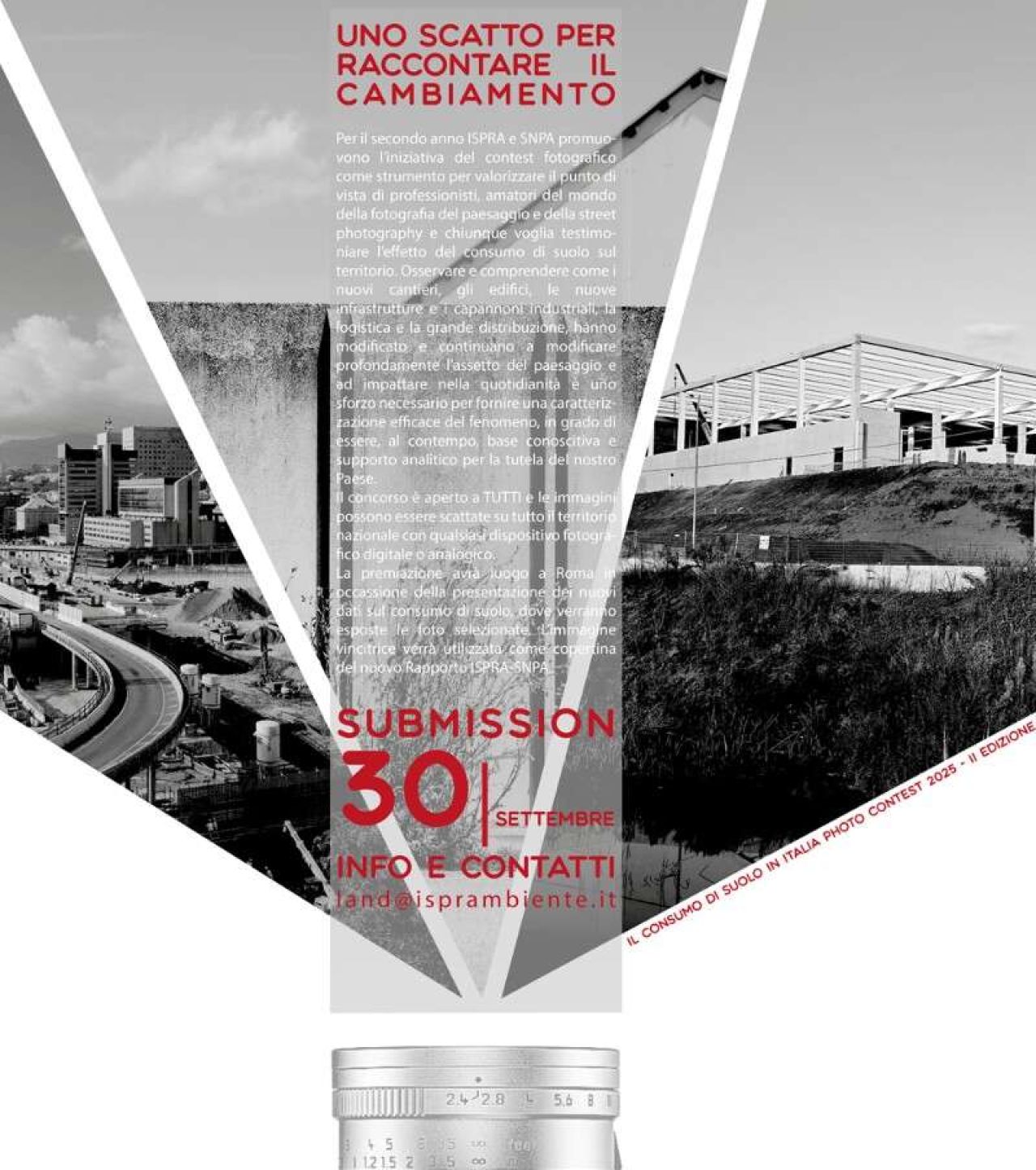 ISPRA e SNPA rinnovano l'iniziativa del contest fotografico per coinvolgere professionisti, amatori del mondo della fotografia del paesaggio e della street photography e chiunque voglia testimoniare l’effetto del consumo di suolo sul territorio, di come i nuovi cantieri, gli edifici, le nuove infrastrutture e i capannoni industriali, la logistica e la grande distribuzione, hanno modificato e continuano a modificare profondamente l’assetto del paesaggio.