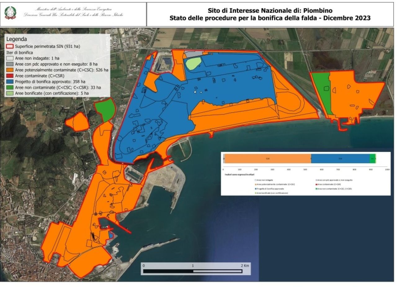 Resta però ancora moltissimo da fare. Secondo i dati aggiornati dal ministero dell’Ambiente a dicembre 2023, dopo oltre un quarto di secolo è bonificato (o non più contaminato) solo il 4% della falda e il 49% dei terreni del Sin piombinese. Il contratto appena aggiudicato da Invitalia dovrebbe essere sufficiente per garantire la bonifica della falda, ma ne consegue che per bonificare l’intero Sin – che si estende su 928 ettari a terra e 2.015 a mare – occorrono molti più fondi.