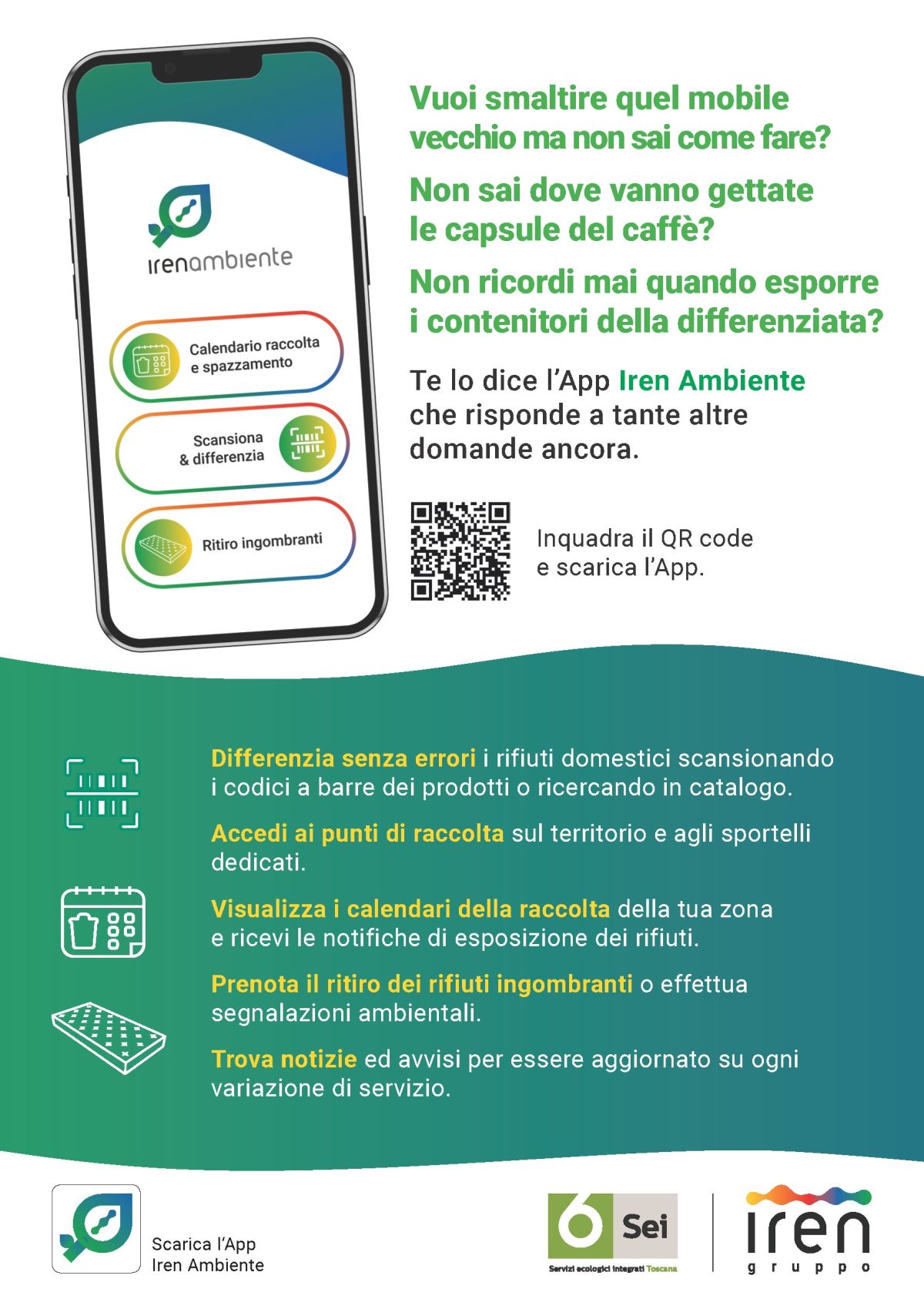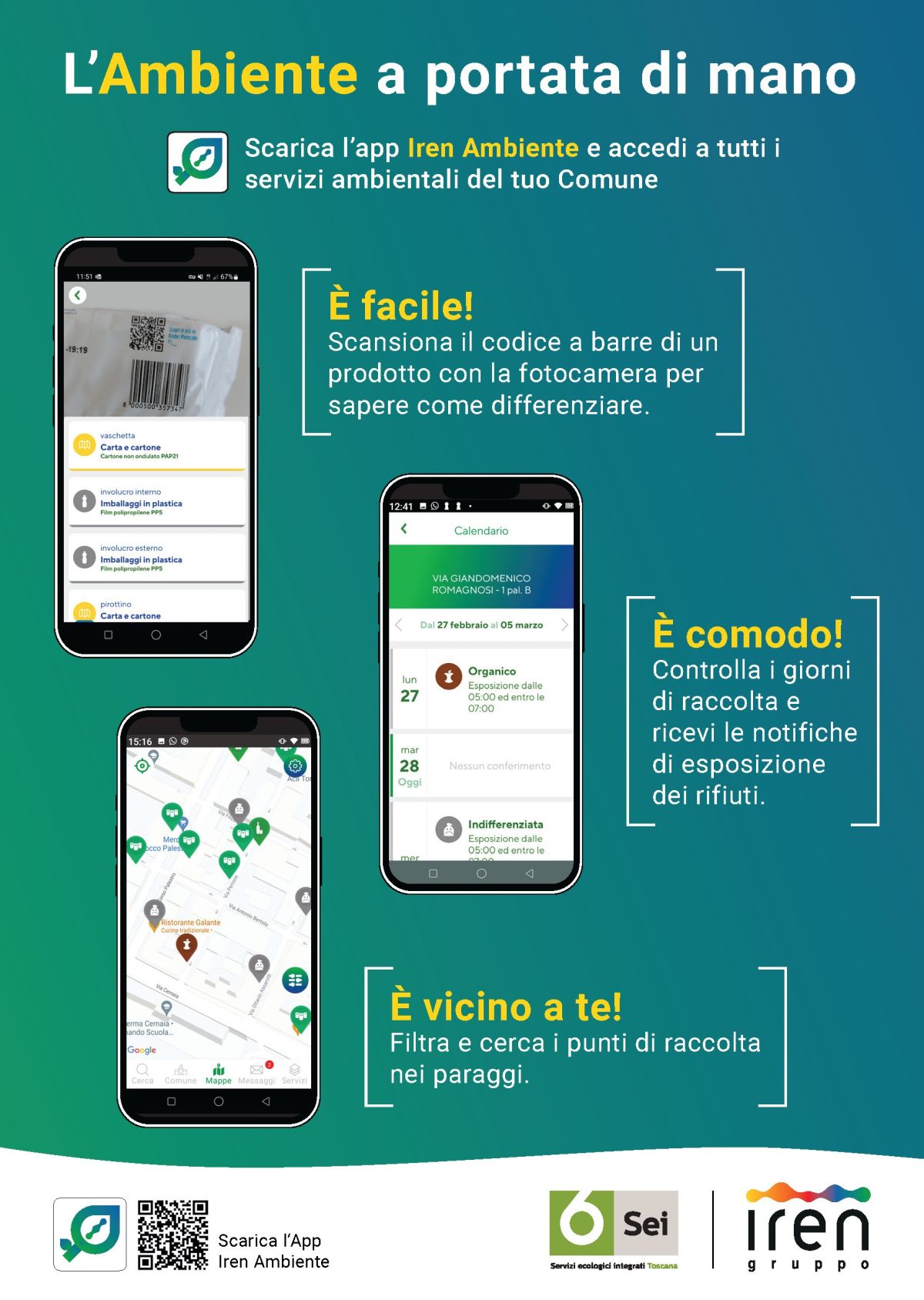 Tutte le informazioni sui servizi ambientali nei 104 Comuni serviti sono adesso racchiusi nell’app Iren Ambiente, sviluppata appunto dal gruppo Iren, e disponibile gratuitamente per il download sui sistemi Android e iOS.