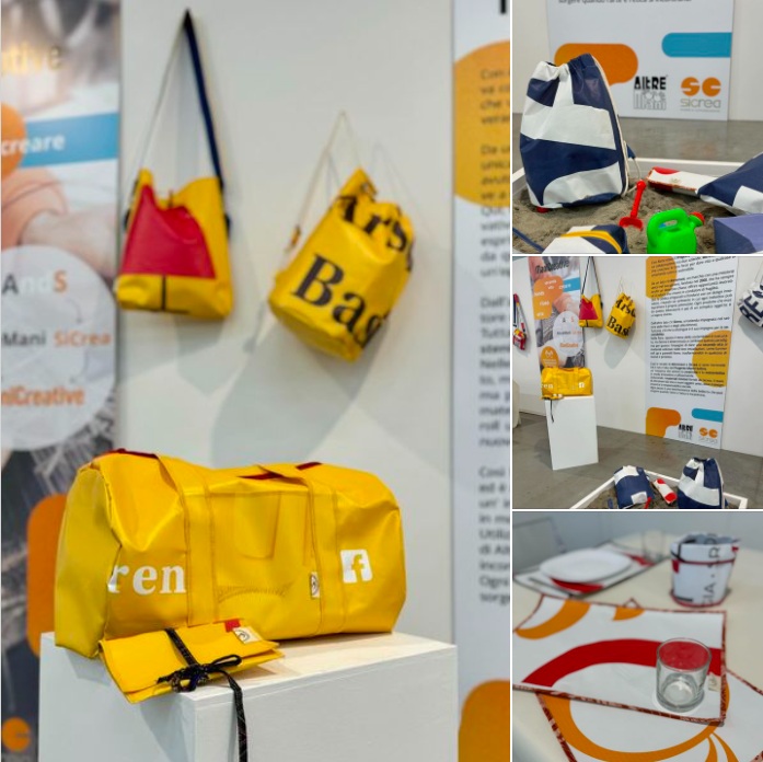 «Con Sicrea e Mauro Niccoli in particolare ci conosciamo dai primi momenti del laboratorio Altremani e ci siamo sempre incuriositi a vicenda, per le potenziali collaborazioni che avremmo potuto avviare. Al tempo non era così diffusa una sensibilità verso i temi ambientali e sociali, ma su questo Mauro è sempre stato lungimirante (un contributo fondamentale per Manicreative è arrivato anche da Alessandro Hoffman, Responsabile tecnico di Sicrea con in tasca una laurea in Architettura e Design, ndr). Dopo la pandemia è arrivata l’occasione di lavorare insieme, e quest’anno abbiamo presentato per la prima volta Manicreative con una linea di borse dedicata al mondo dello sport, realizzate riusando il materiale pubblicitario utilizzato nelle fiere a cura Sicrea, come quella di Scandicci, Abita, il Carnevale di Viareggio e molte altre».