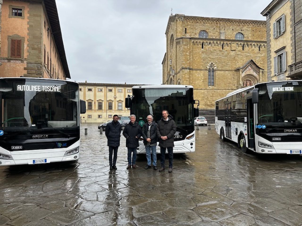 Attualmente sono 213 i bus di Autolinee Toscane – il gestore unico del servizio di trasporto pubblico locale in regine – in servizio per la sede operativa di Arezzo: 67 urbani, 2 per il noleggio, 144 interurbani. Oggi ne sono stati presentati 5 nuovi, in dotazione da gennaio, continuando il progresso in corso da ormai oltre tre anni.