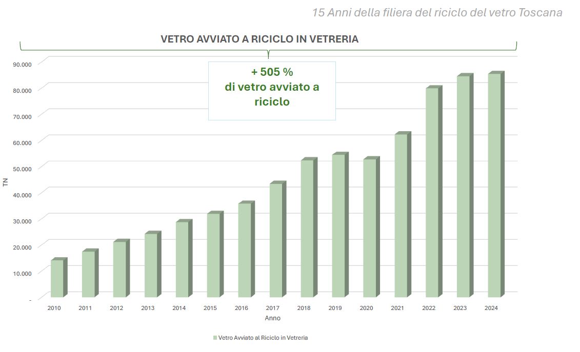 In Toscana l’economia circolare del vetro è a km zero: riciclo al 96,5% e -26% per le emissioni di CO2