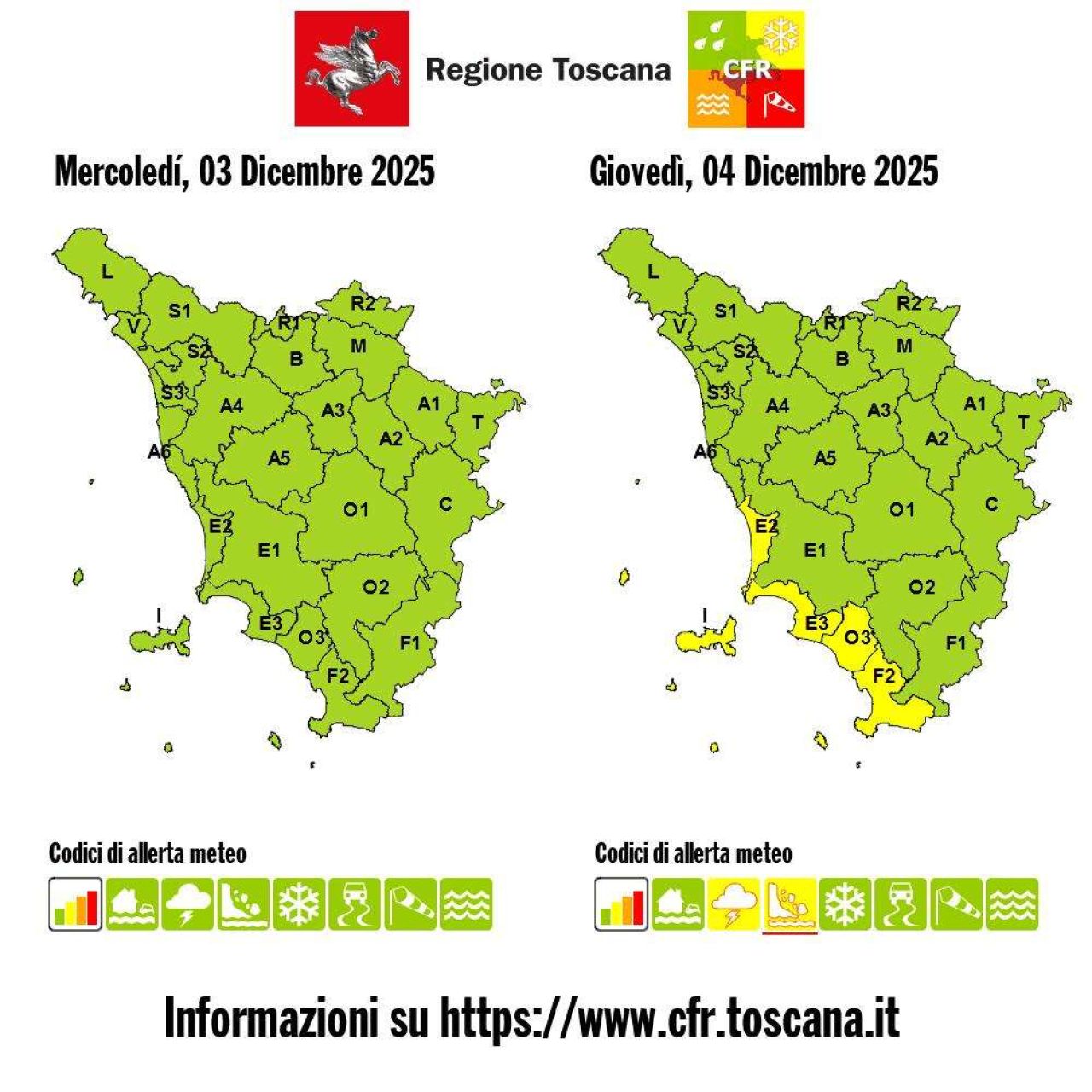 La Sala operativa unificata della Protezione civile toscana (Soup) ha appena diramato una nuova allerta meteo, di codice giallo, per rischio idrogeologico e temporali forti per tutta la giornata di domani giovedì 4 dicembre su costa meridionale e Arcipelago.