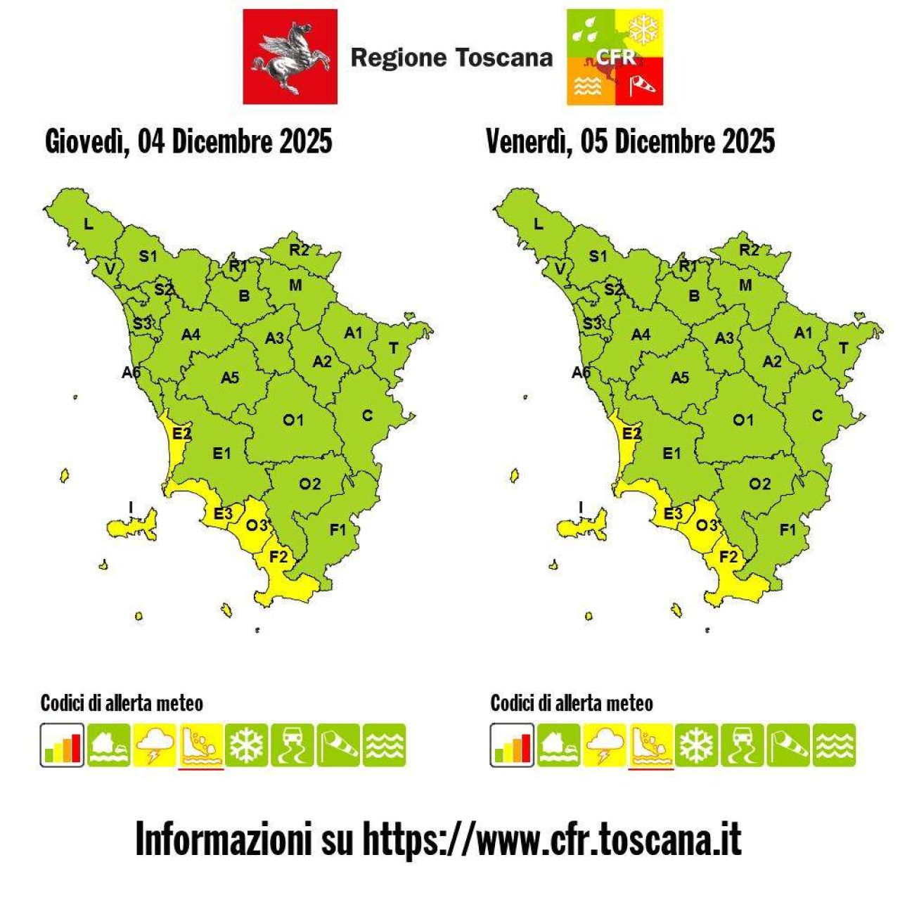 Dopo quella annunciata ieri, oggi la Sala operativa unificata della Protezione civile toscana (Soup) ha appena diramato una nuova allerta meteo, di codice giallo, per rischio idrogeologico e idraulico del reticolo minore e temporali forti: sarà in vigore fino alle ore 8 di venerdì 5 dicembre.